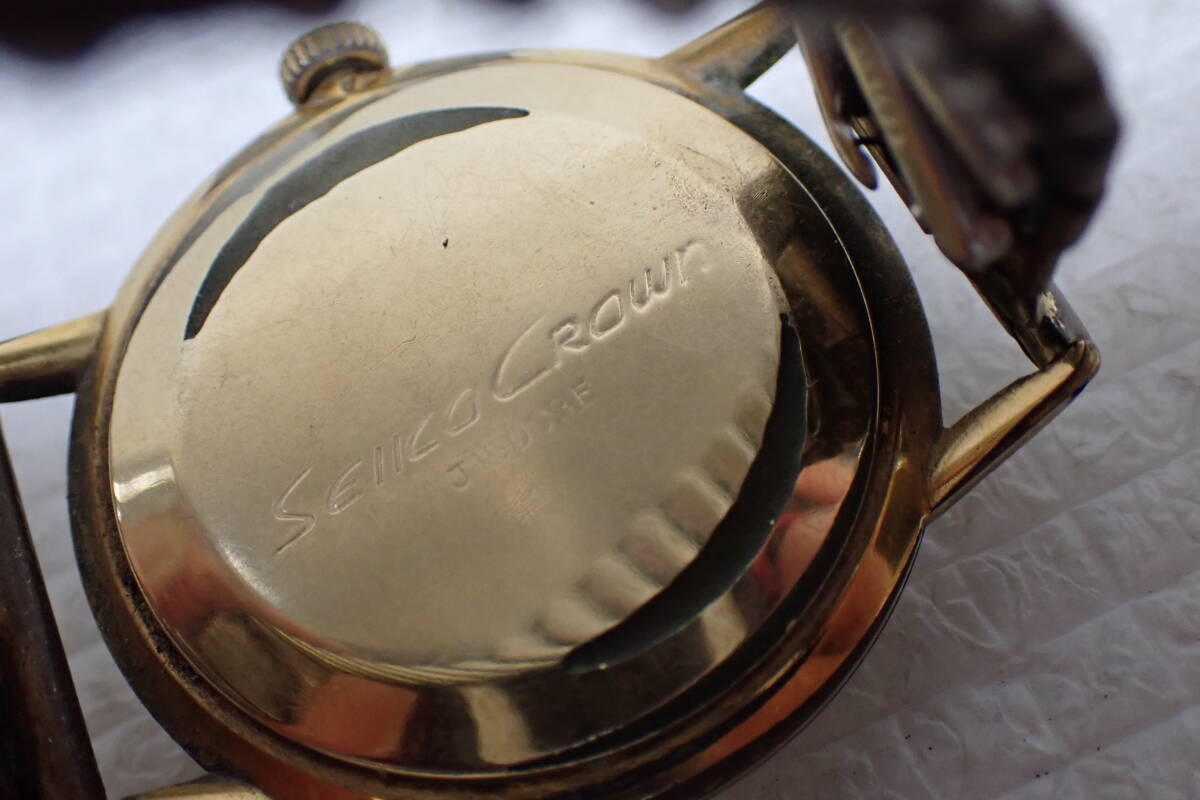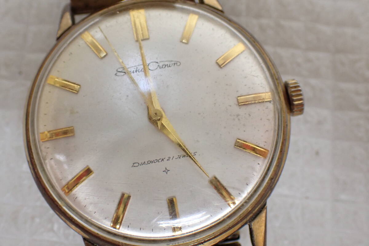 SEIKO セイコー CROWN クラウン 21石 手巻き 腕時計 J15003F ゴールドカラー メンズ 稼働品 D2-MA 中古品です。 風防にスレ、文字盤内の汚れ、ケースのスレや剥げ、裏の欠け、ベルトのスレや傷、変色や錆、1つコマカバーの取れなどの傷みがございます。 巻くと稼働しますが、精度は不明です。 ○サイズ ケース 約3.5cm×約3.8cm(リューズ含む) 腕回り 約15.5cm~(ゴムベルト) ベルト幅 約1.7cm 重量 約50g ※素人採寸の為、多少の誤差はご了承下さい。 詳しい状態などは画像を参考に判断してください。 状態の説明はあくまでも出品者の主観ですので、神経質な方のご入札はお控え願います。 写真に写っている物がすべてですので、その他に付属品などはありません。 ※ご使用のパソコン、モニターなどの環境によっては実際の色と若干異なって見える場合がございます。 お探しの方はお見逃しなく! この機会にぜひどうぞ! ノークレーム・ノーリターンとなります。 よろしくお願いします。 特定商取引法に基づく表記 【会社名】 株式会社 西川殖産 【代表取締役】 西川 守 【古物営業許可】 兵庫県公安委員会許可 第631641300006号 【店舗】 エタニティ野里店 【営業所所在地】 兵庫県姫路市野里311-3 アクロポリスⅡ-1F 【連絡先】 079-222-7705 【営業時間】 午前10時~午後7時 【定休日等】 水曜日は定休日となっておりますので、火曜日の夕方から水曜日にご入金、ご連絡などをしていただいた方へのご連絡・発送などは翌日以降となってしまいます。 オークションにつきましても、火曜日の夜から水曜日にご落札していただいた方へのご連絡は翌日以降となってしまいます。 ※その他、GW・お盆・年末年始などもお休みを頂いておりますので、その期間中などもご連絡・発送などできません。(※休みの期間はその都度異なりますので、お急ぎの方は事前にご質問などでご確認していただけますよう、よろしくお願いします。) こちらの都合で誠に申し訳ありませんが、あらかじめご了承いただいた方のご入札をお願い致します。 | |||
