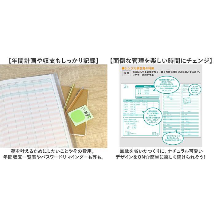 商品説明 | ・・【お金の流れをわかりやすく管理】 ・簡単にざっくり、お金の流れを見える化◎可愛らしいデザインの「A5 シンプル家計簿」。 ・【思い立った日からスタート】 ・日付が書かれていないので、お好きな日から始められる!56ページのフリータイプ家計簿。 ・【節約のヒント探しにぴったり】 ・何にいくら使ったかをひと目で把握!1ヶ月の支出を記入できるシンプルなフォーマット。 ・【家計簿初心者や続かない方も安心】 ・食費以外の費目は自由に設定。食費の項目は1週間単位の集計、その他は項目でまとめるだけ。 ・【年間計画や収支もしっかり記録】 ・夢を叶えるためにしたいことやその費用。年間収支一覧表やパスワードリマインダーも等も。 ・【便利なポケット付きカバー】 ・家計簿の汚れなどをガードするカバー。ファスナーポケット&小物ポケット付き。 ・【面倒な管理を楽しい時間にチェンジ】 ・無駄を省いたつくりに、ナチュラル可愛いデザインをON☆簡単に楽しく続けられそう! ・【フォーマット内容】 ・年間計画と記念日リスト・ウィッシュリスト・月間収支・グリッドメモ・年間収支一覧表・フリー項目別控え・アドレス・パスワードリマインダー |
