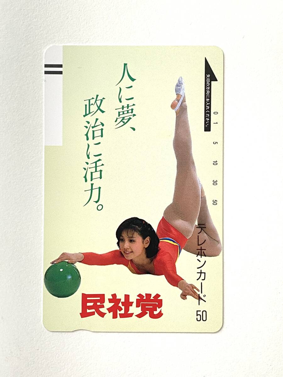 【T296】政治 テレカ 50度数 未使用 民社党 女性モデル レオタード テレホンカード 政治家 政党