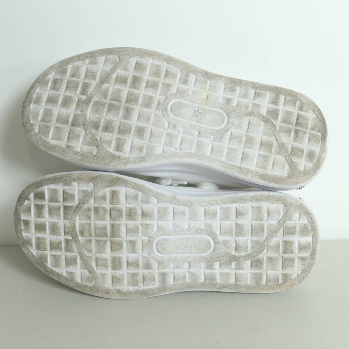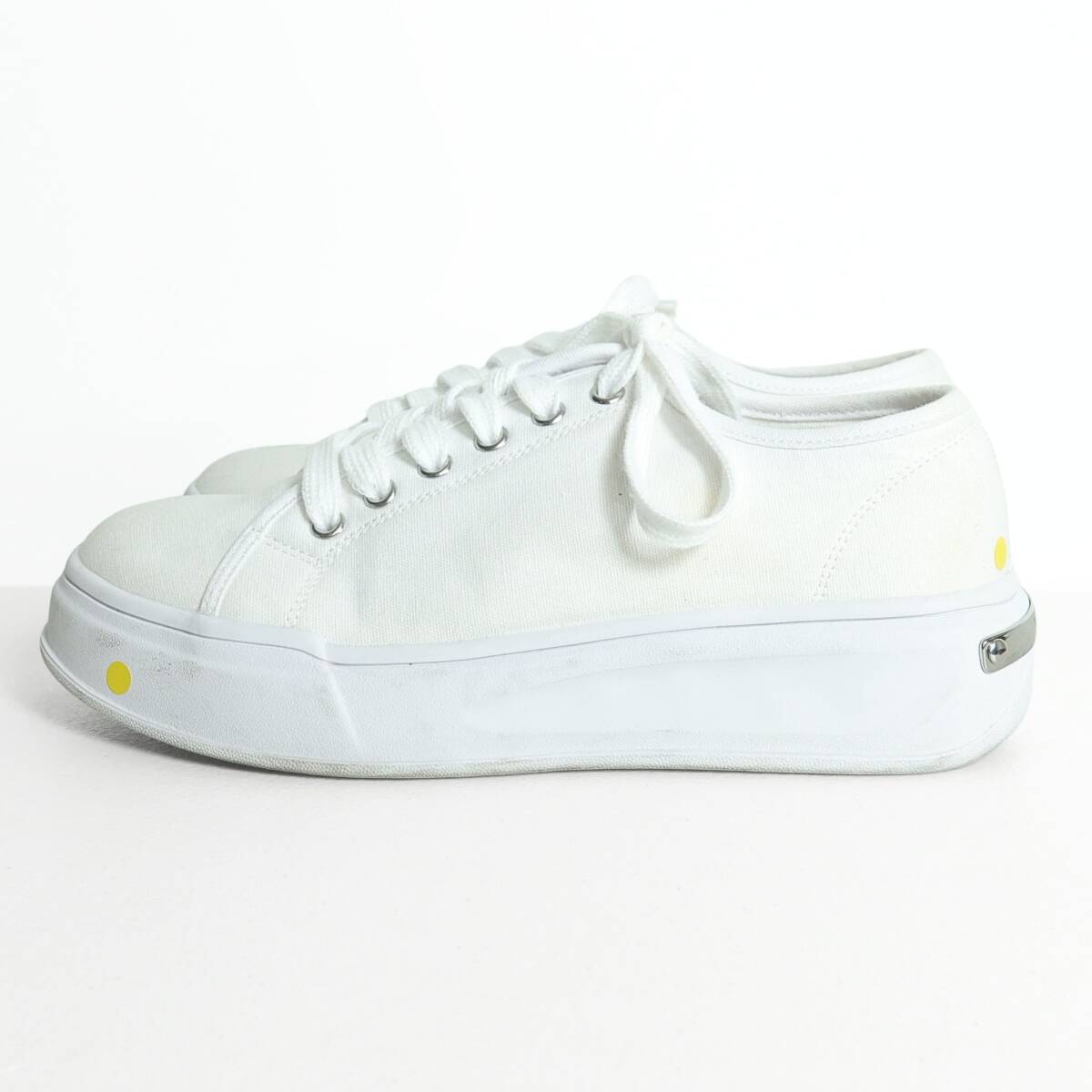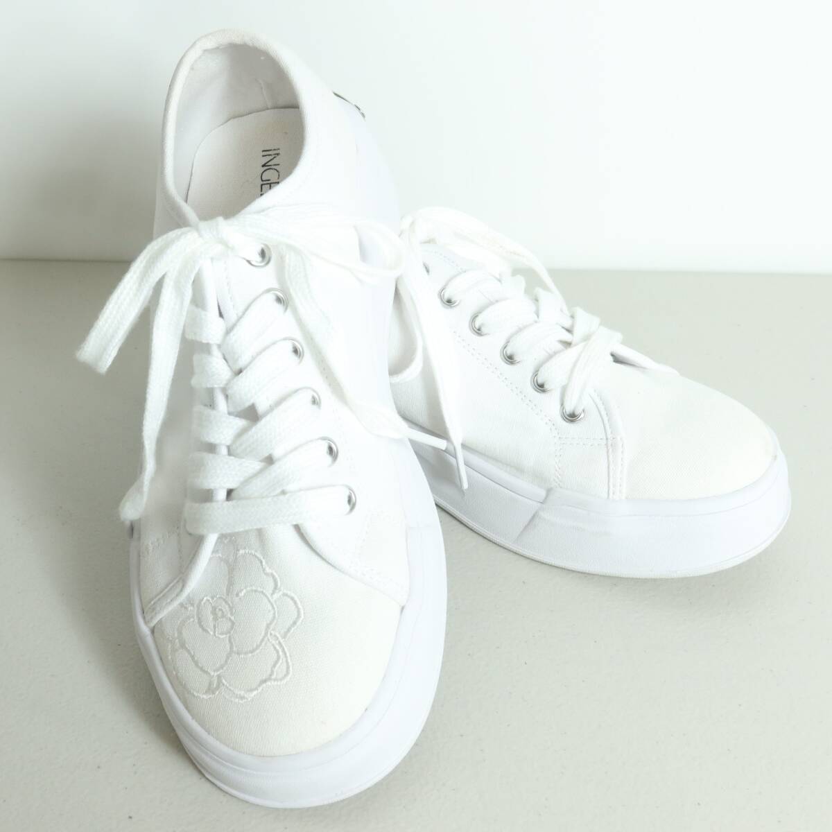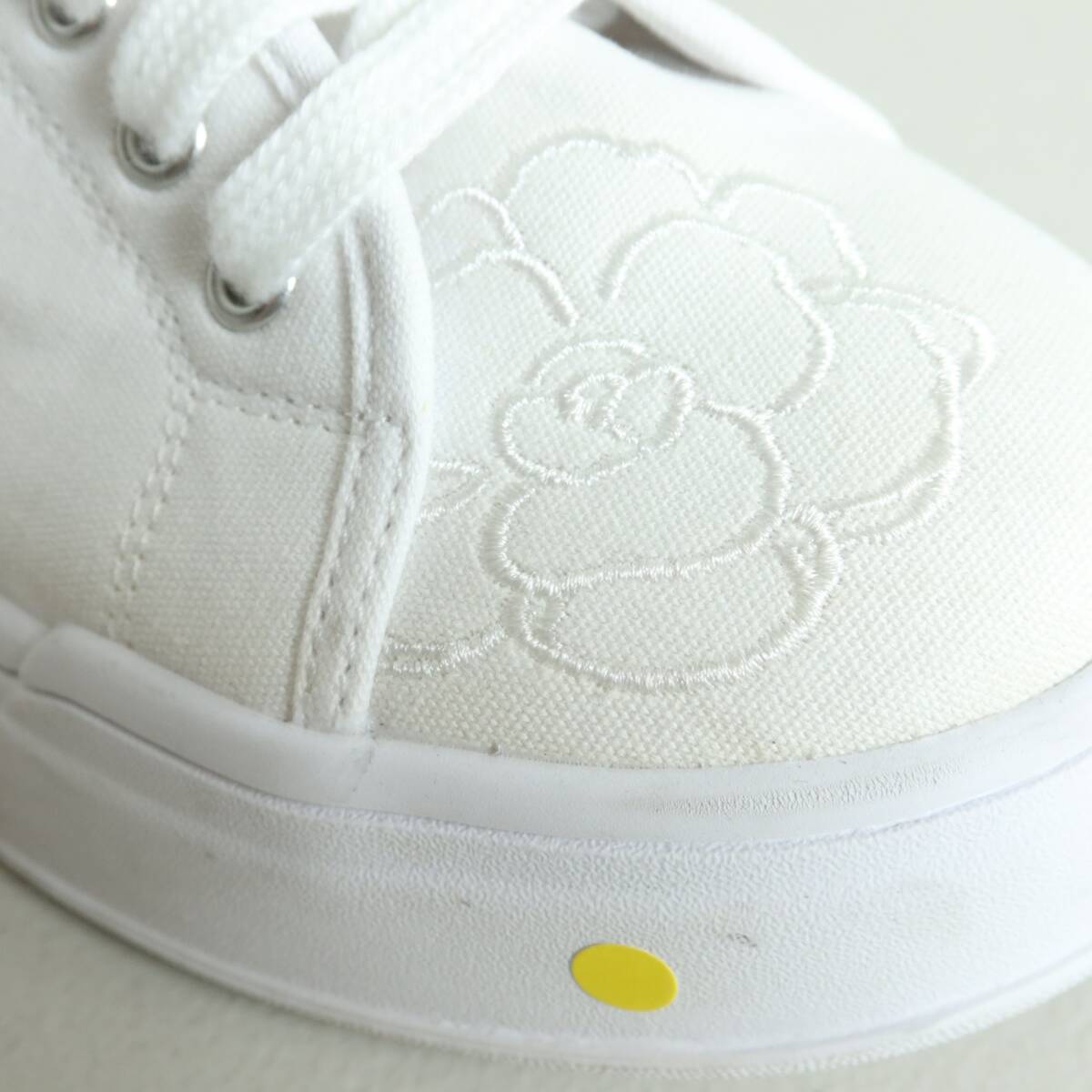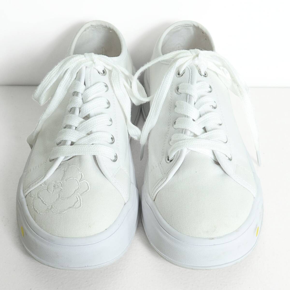 | 商品説明 | 【実寸約】靴底長さ25.5 【サイズ表記】23.5 【状態】普通の使用感あるお品物 全体的に薄汚れ感あります 【デザイン】オフホワイト系 つま先のカメリアの刺しゅうがほどこされています かかとにシルバープレートが配された素敵なスニーカーです |