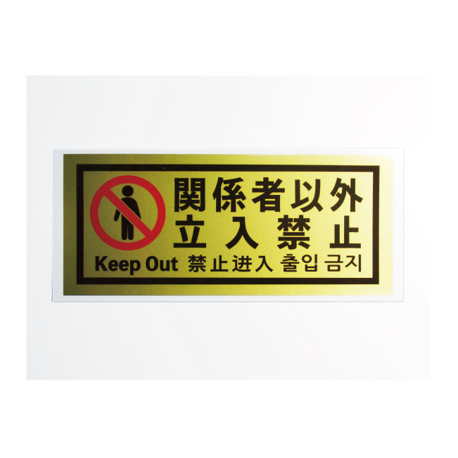 「関係者以外立入禁止」ステッカーです。 <高耐久性シートを使用> 高耐水・高耐候性に優れた材質を使用の上、UVカット95%以上のコーティングを施して製作をしていますので屋外での使用も大丈夫です! ・高級感のあるメタリックゴールドのステッカーです。(同じデザインのシルバータイプも出品しています) ・強粘着タイプですので、しっかりと貼る事ができます。 ・サイズは縦70mmX横160mmです。(他のサイズも多数ございます。ご希望のサイズがございましたら、お気軽にお問い合わせ下さい) ・カッティングステッカーではなく、1枚物のステッカーですので簡単にお貼りいただけます。 ・ 防犯ステッカー・セキュリティステッカー他にも多数出品しています!