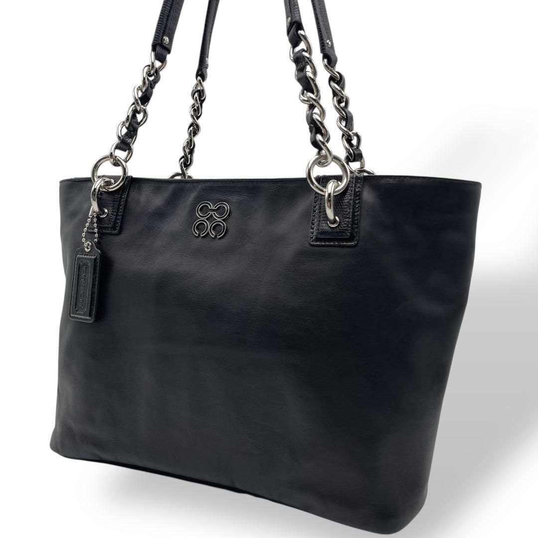 COACH トートバッグ レザー ブラック 肩掛け チェーン 16409