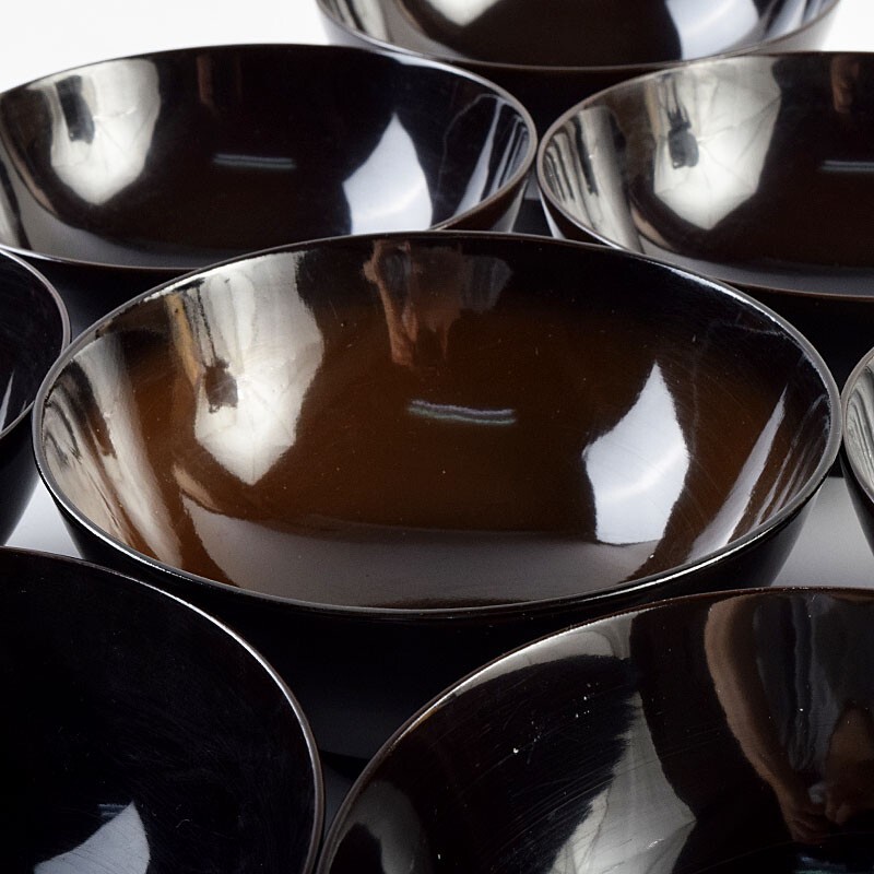 時代漆器 黒漆 絵変り 山水蒔絵 吸物椀 十客 時代箱付 VBMK