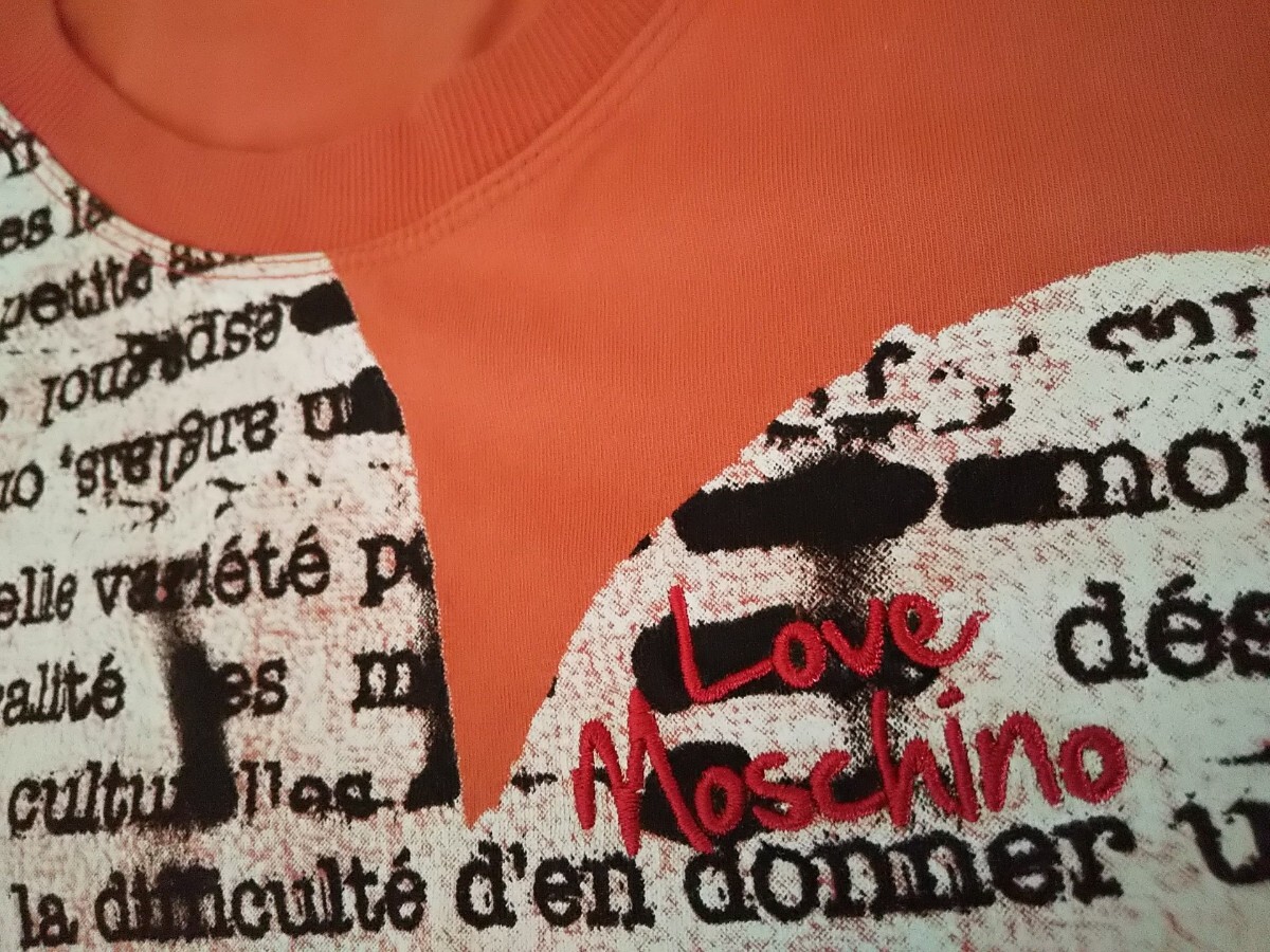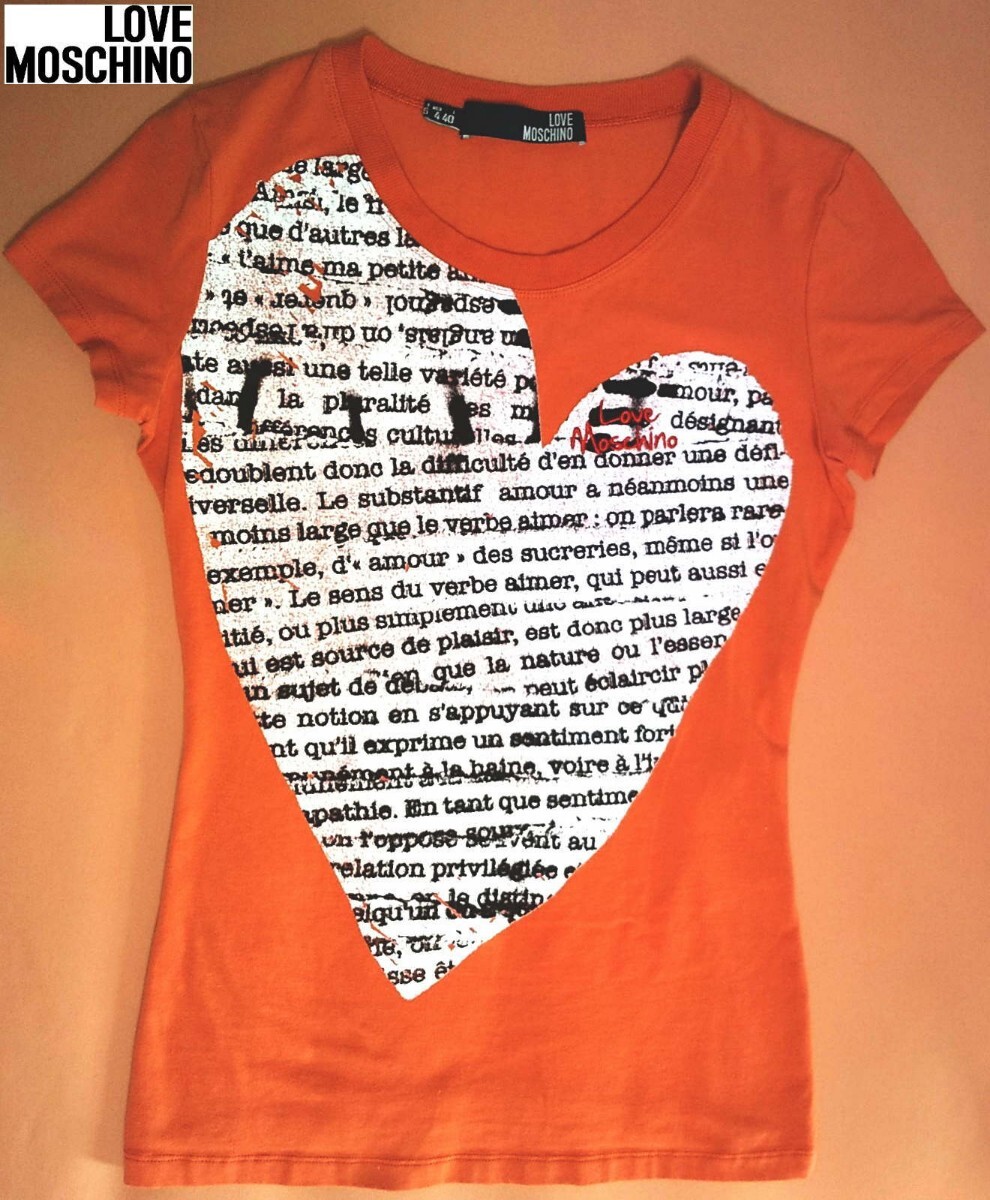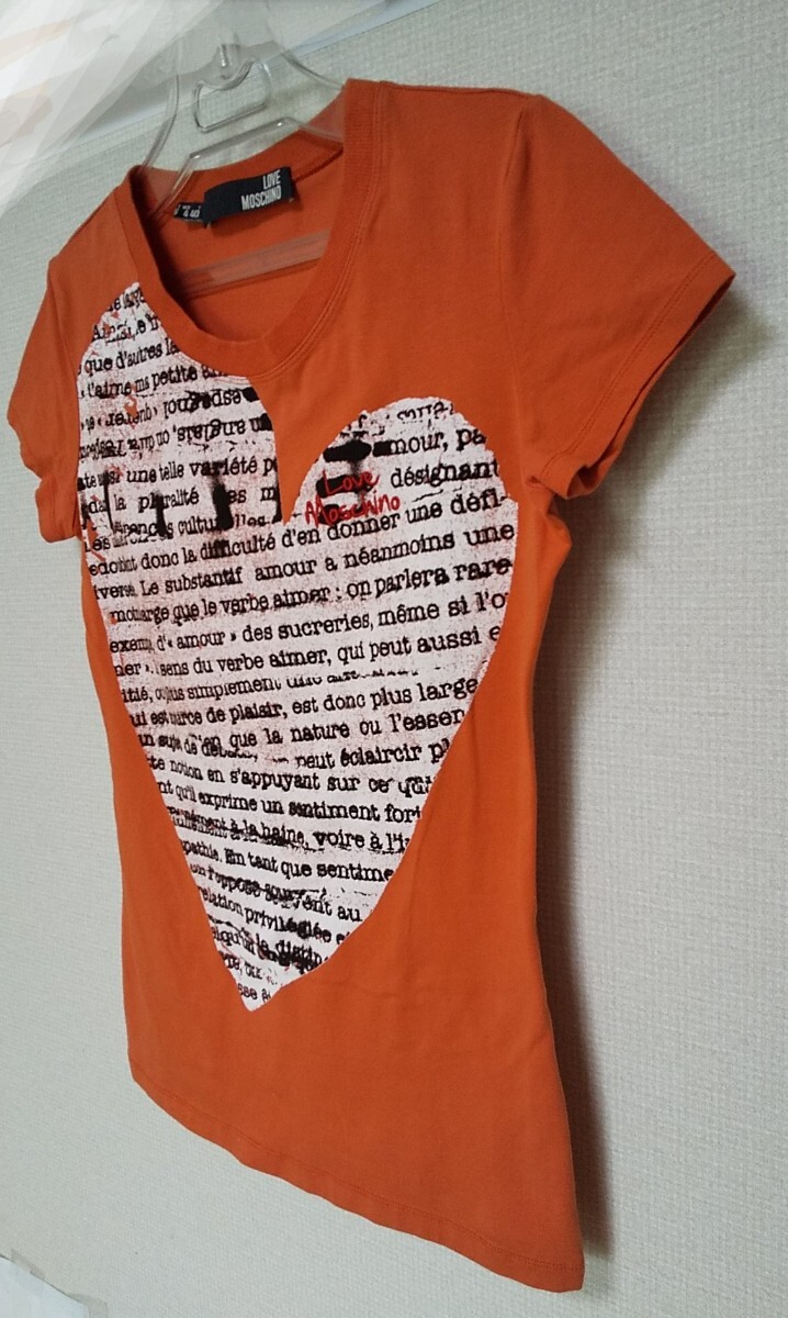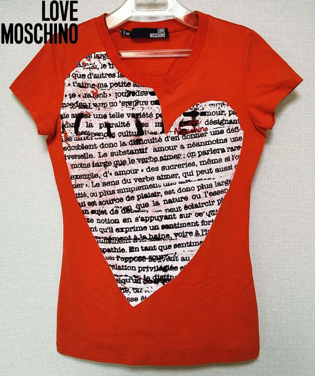 モスキーノの代表的な、ハートマークの左胸にはLOVE MOSCHINOとレッド刺繍が。