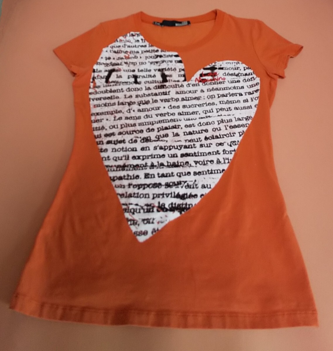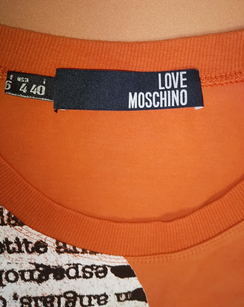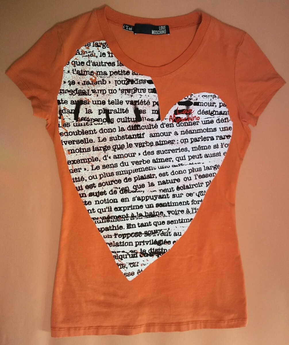 モスキーノの代表的な、ハートマークの左胸にはLOVE MOSCHINOとレッド刺繍が。