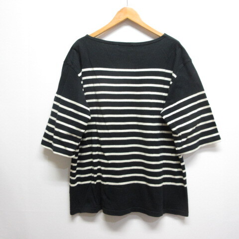 ビームス BEAMS ボーダー柄 五分袖 ボートネック カットソー Tシャツ 黒 ブラック ワイド ビッグシルエット メンズ