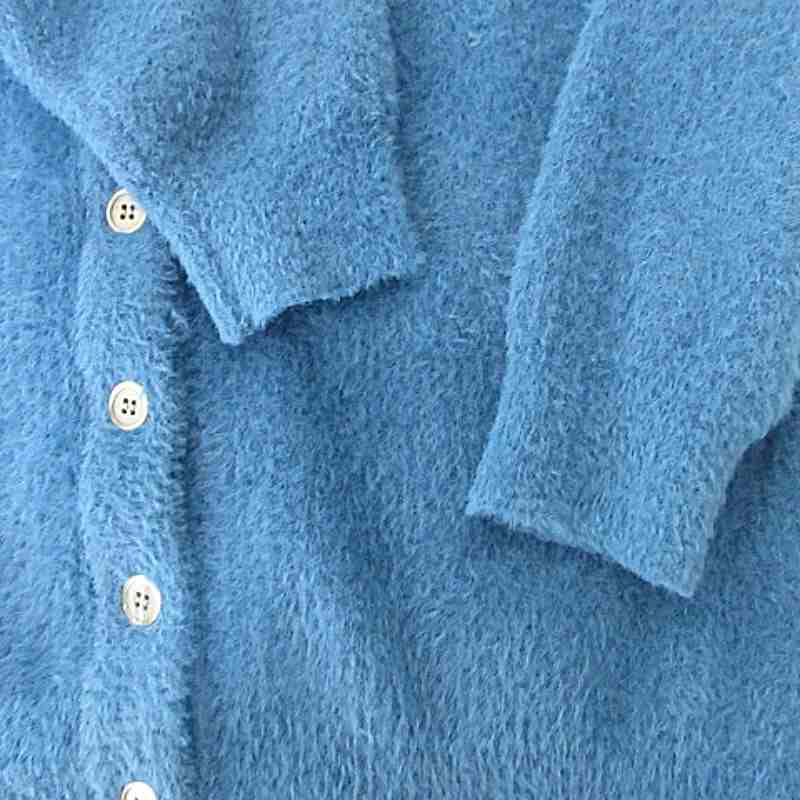 サマンサモスモス SM2 美品 シャギーニット カーディガン セーター F 紺碧 ブルー レディース