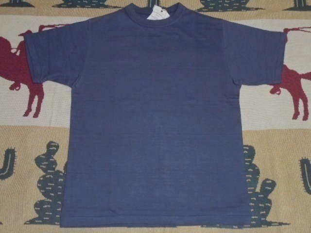 「吊り編み機より希少」といわれる旧式のローゲージ編み機で編まれたウエアハウスのオリジナル定番丸胴ボディーを使用したTシャツです。1960年代のTシャツが最もアメリカらしかった時代の風合いや経年変化を再現しています。12番のムラ糸で独特の陰影が出るように編まれた生地「シャドウボーダー」と呼ばれ、無地でありながらうっすらと横段のようなムラが浮かびます。ネックラインは現代的な極端に前下がりとネックを広く採った仕様ではなく、フライスにパイピングを噛ませる事で堅牢な雰囲気を持ちながら、着込むほどに適度に前下がりと左右の緩みが生まれます。購入時にはヴィンテージのデッドストックのような首のやや詰まった風合いでも、着用と洗濯を繰り返す事で直ぐに自然な古着のようなネックラインが生まれるイメージです。