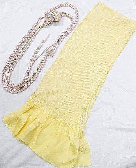 総絞りの帯揚げは淡いクリーム色系のお品になります。