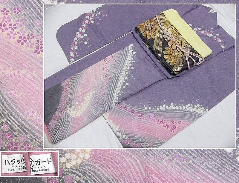 本振袖はハジックガード加工のタグがございますから撥水加工をしてあるように思います。