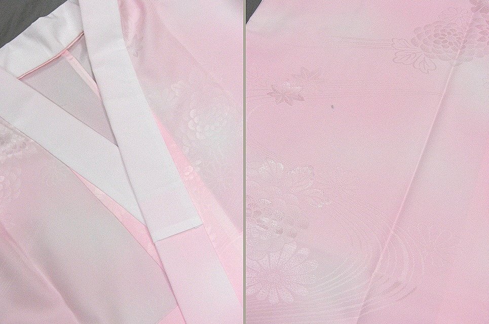 流水に花模様の地紋で淡いピンク色のぼかし染の長襦袢です。