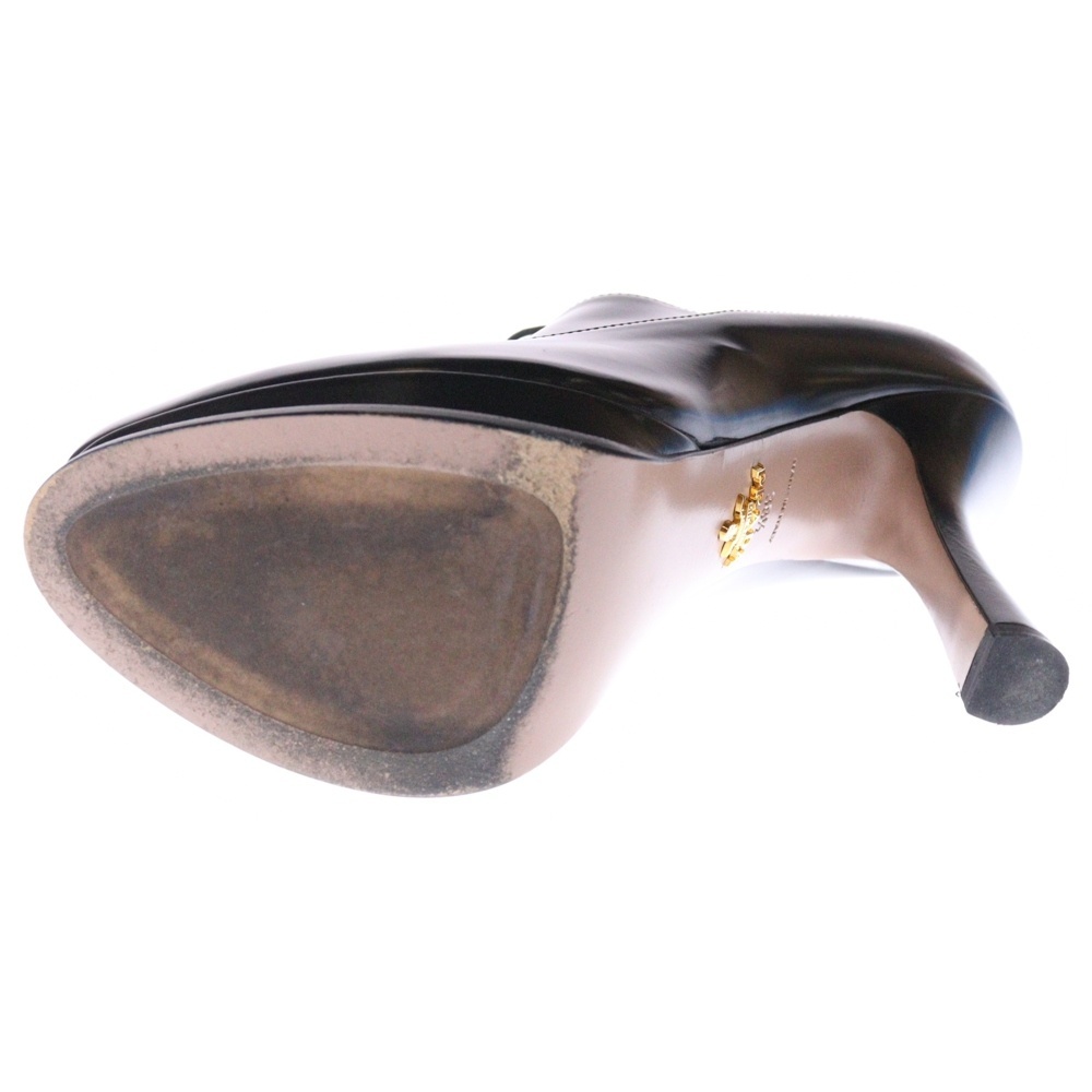 PRADA プラダ ハイヒールレザーシューズ レザー 編み上げ ブラック #38 1/2 レディース