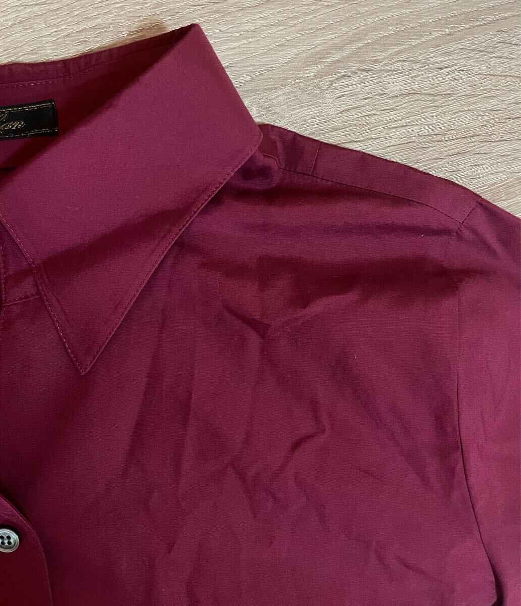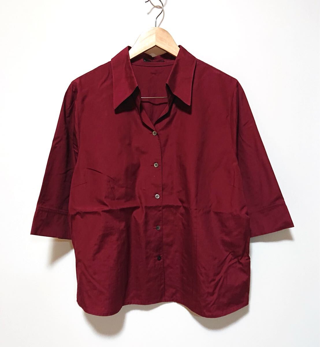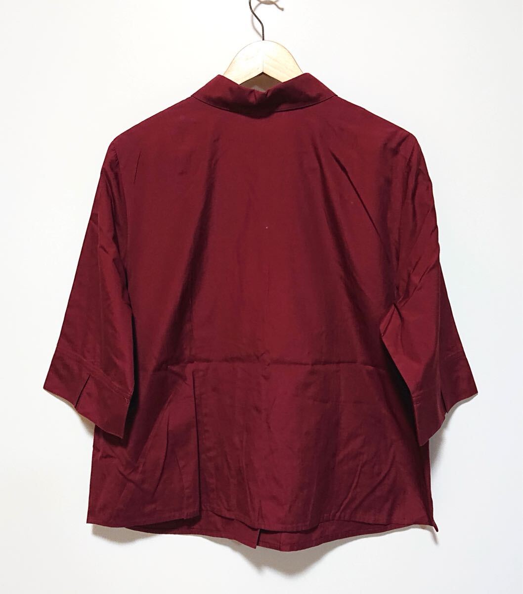 h3692gg 日本製 Leilian/レリアン サイズ17+(4L位) 七分袖シャツ ワインレッド レディース シンプル 春夏シャツ オフィス カラーシャツ