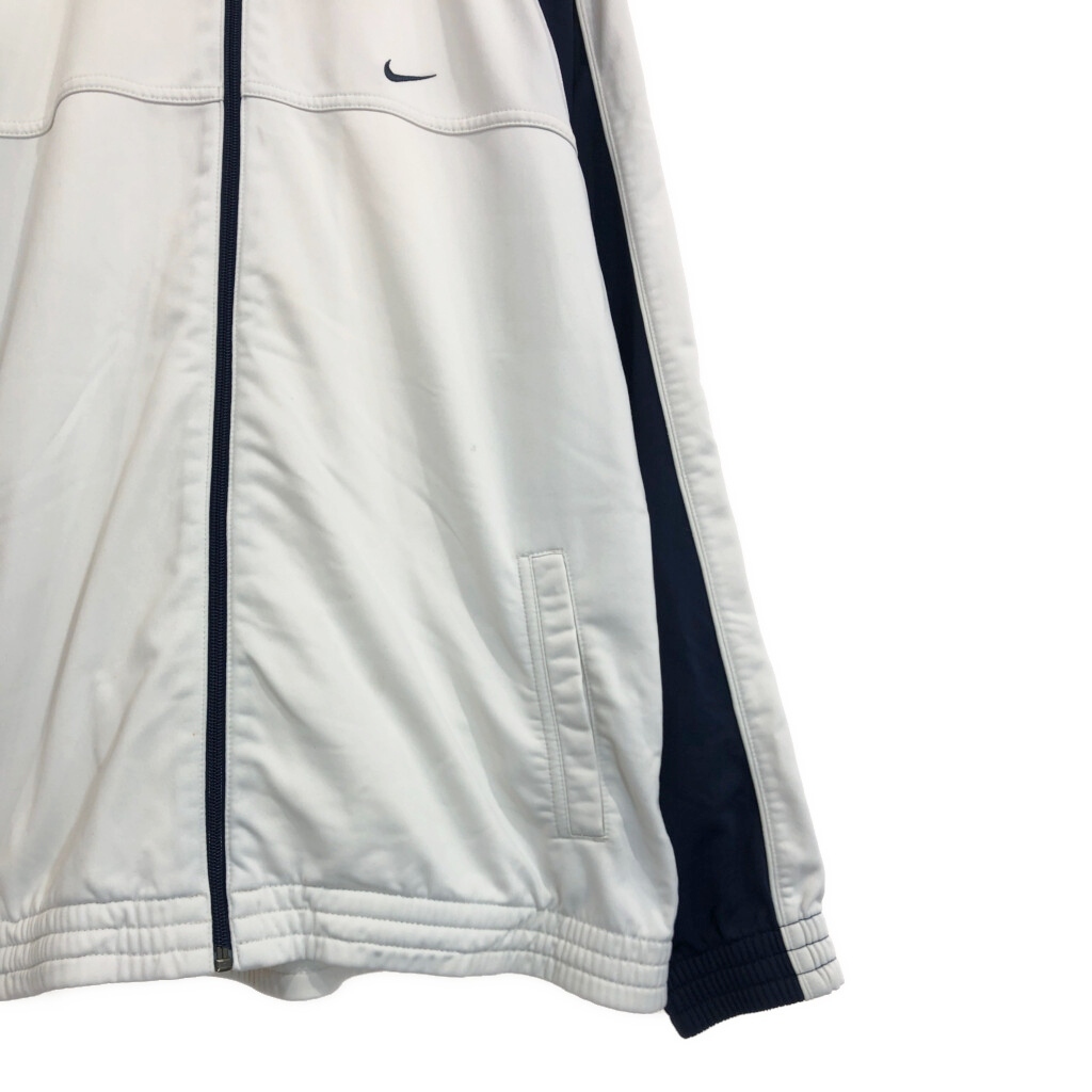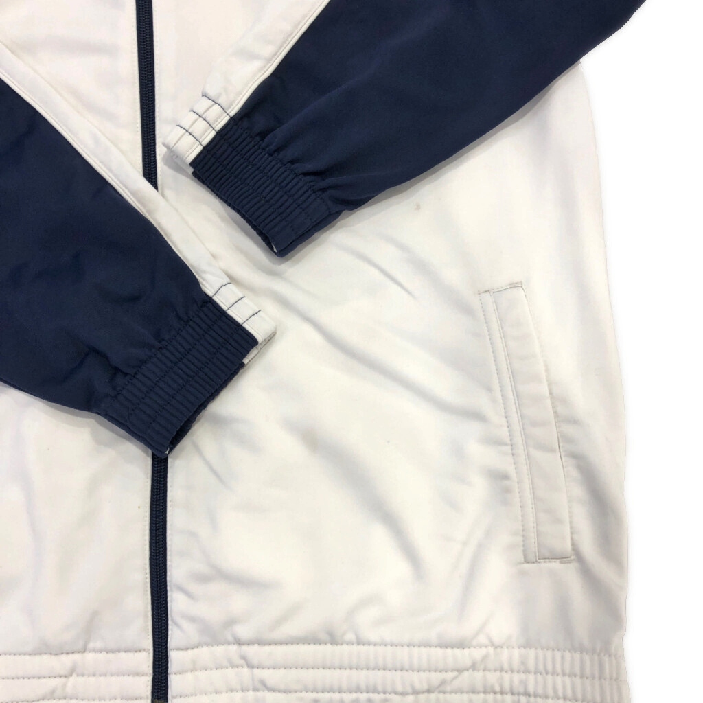 | [商品管理番号] U7200 [ブランド] NIKE/ナイキ [サイズ] L [実寸サイズ] 着丈:約71cm 身幅:約59cm 裄丈:約87cm 袖下丈:約58cm [主な素材] 表地 : ポリエステル [色] ホワイト [仕様] 00年代 スポーツ トラックジャケット [状態] 汚れ:肩、腹部、背中 特記事項:変色 | |||