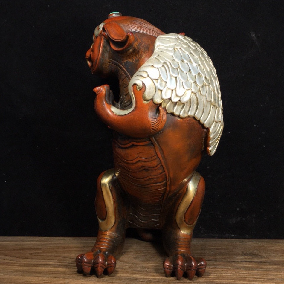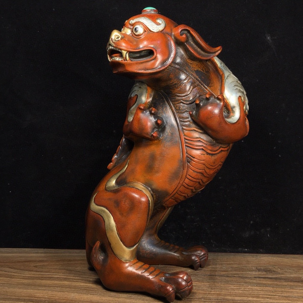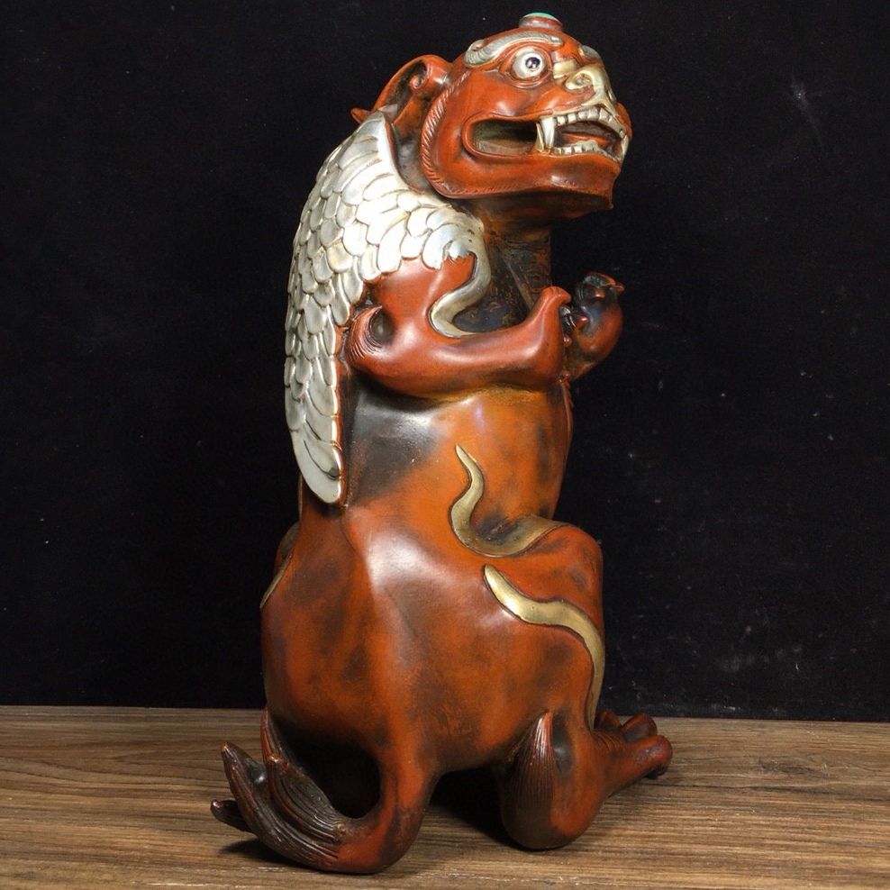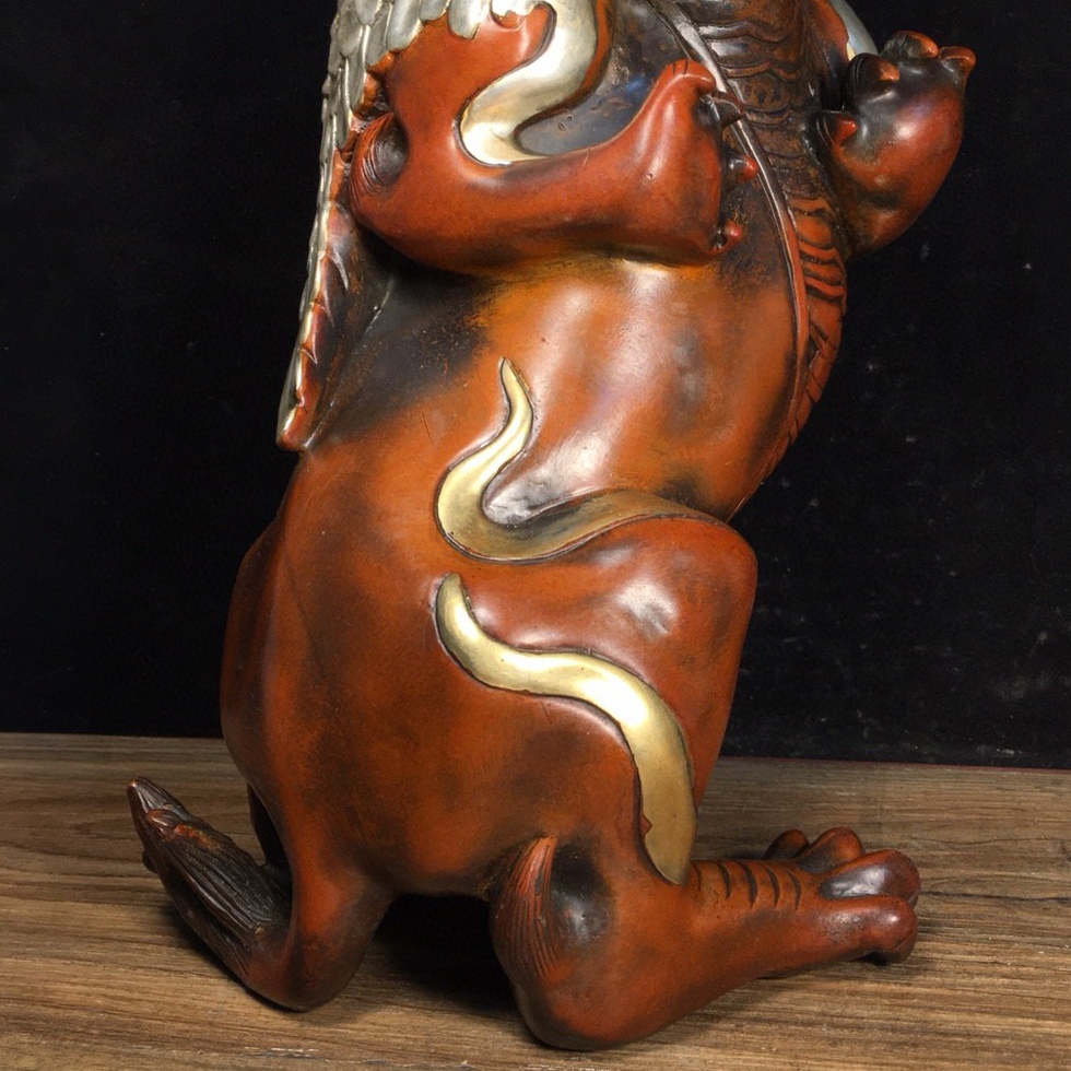 唐物 清 純銅 塗真金白銀 招財辟邪 神獸 置物 銅製品 銅器 極細工 古美術品 時代物 中国古玩 骨董品 D67