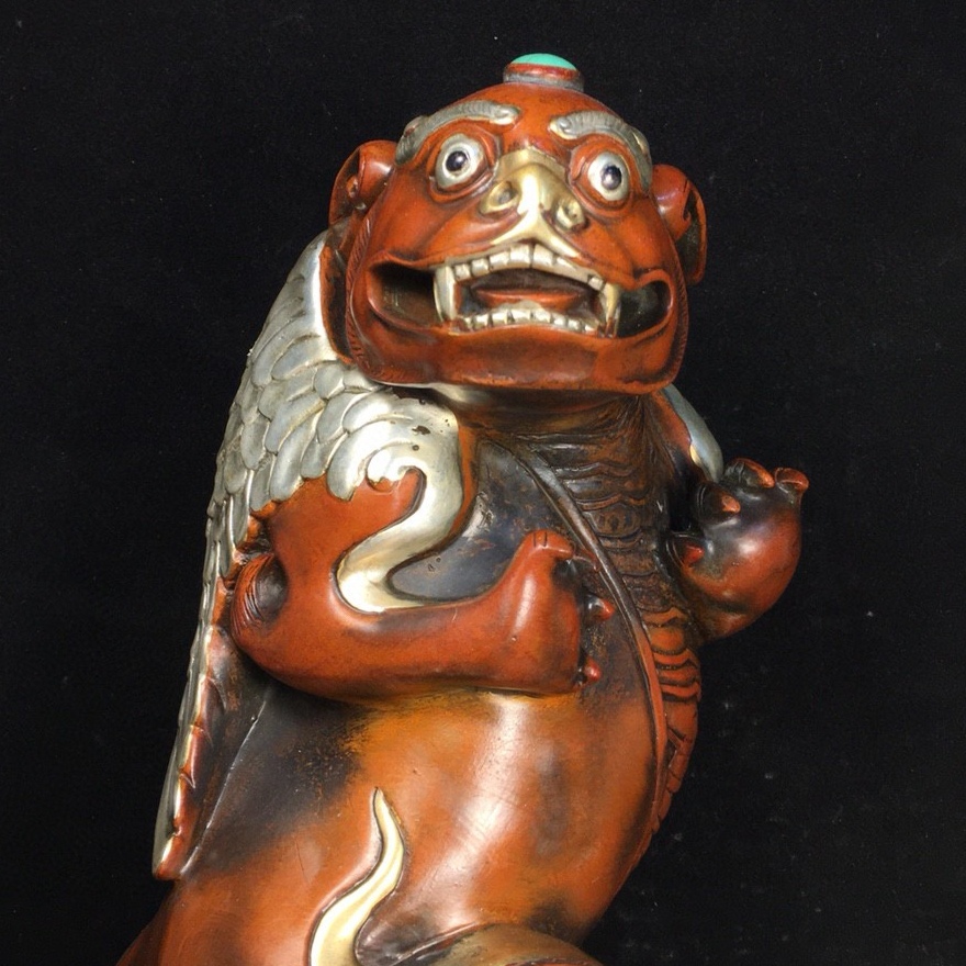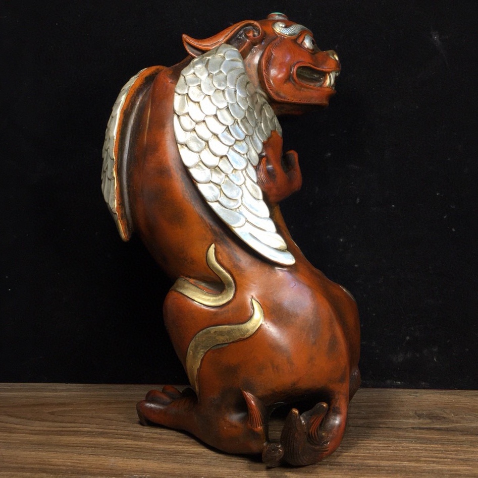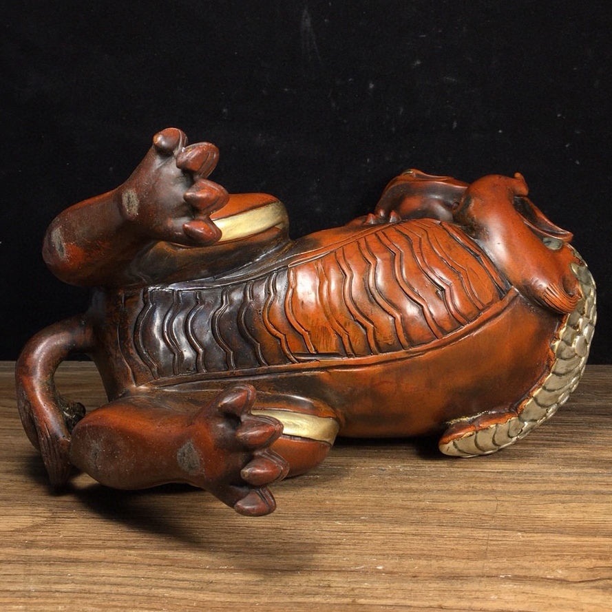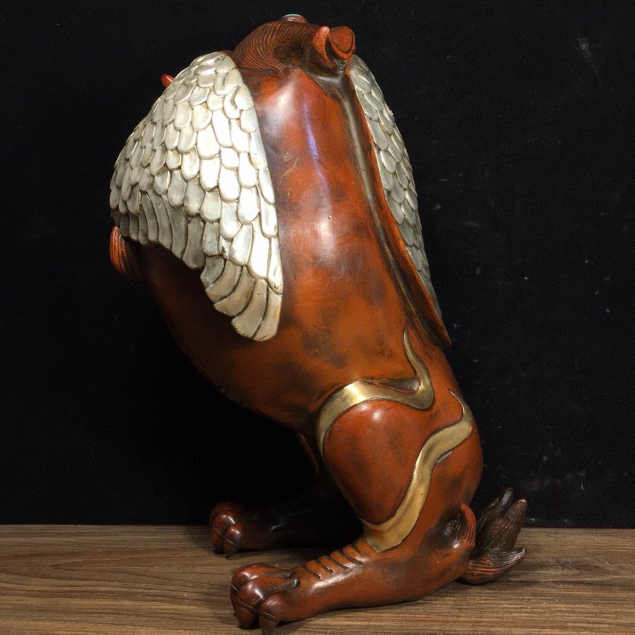 唐物 清 純銅 塗真金白銀 招財辟邪 神獸 置物 銅製品 銅器 極細工 古美術品 時代物 中国古玩 骨董品 D67