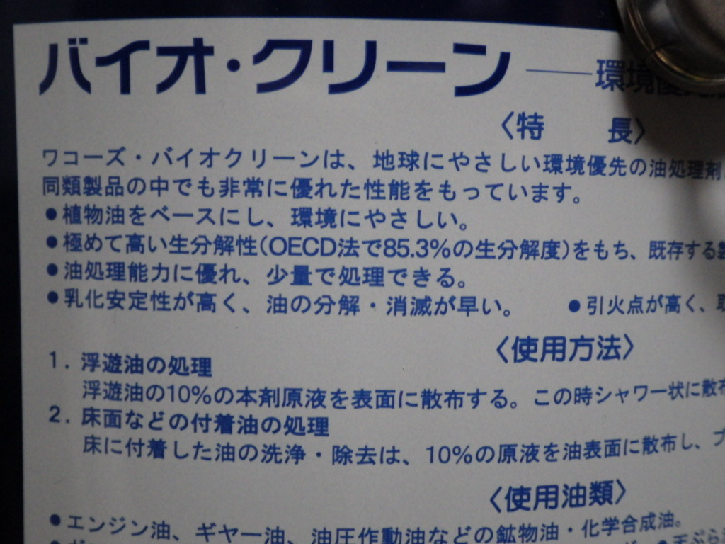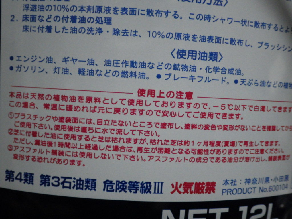 極めて生分解性の高い、環境対応の洗浄剤(海での油漏れ事故でも使はれてゐるさうです)。