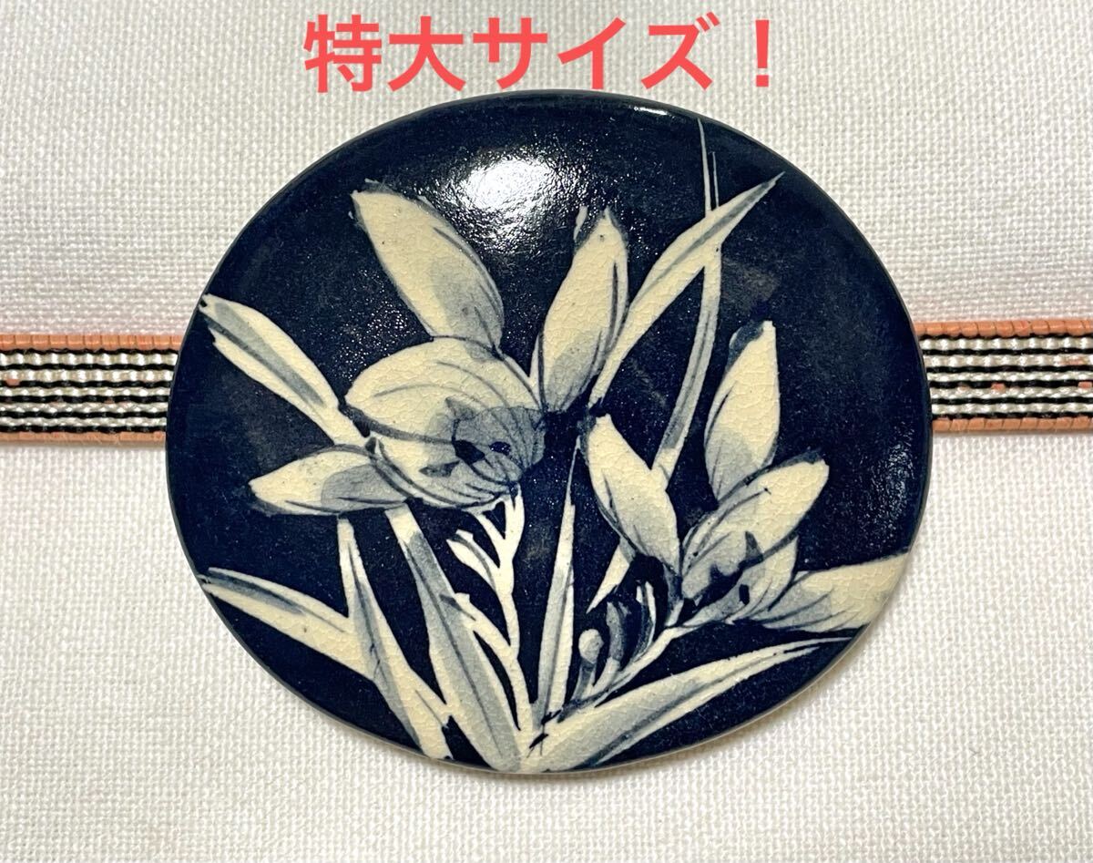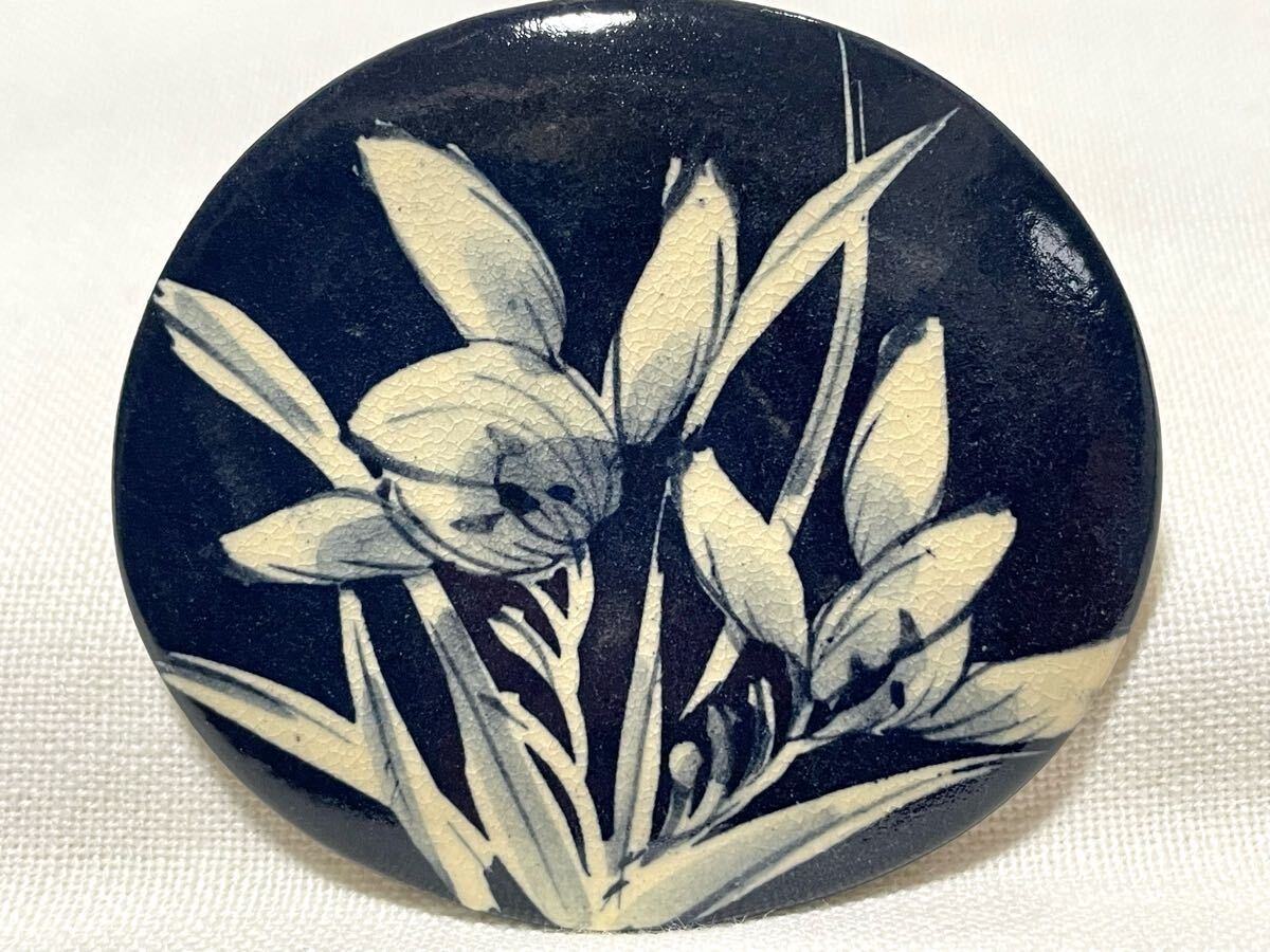 陶器・清水焼のアクセサリーを帯留めにリメイクしました。
