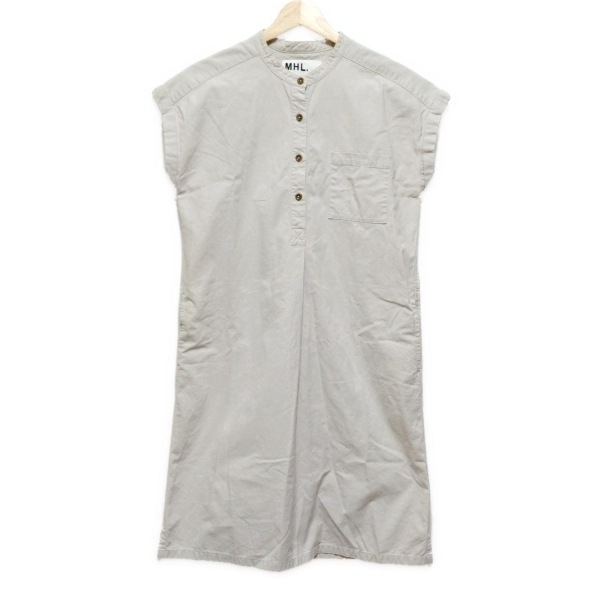 エムエイチエル MHL. サイズ1 S - ベージュ レディース クルーネック/半袖/ひざ丈 ワンピース