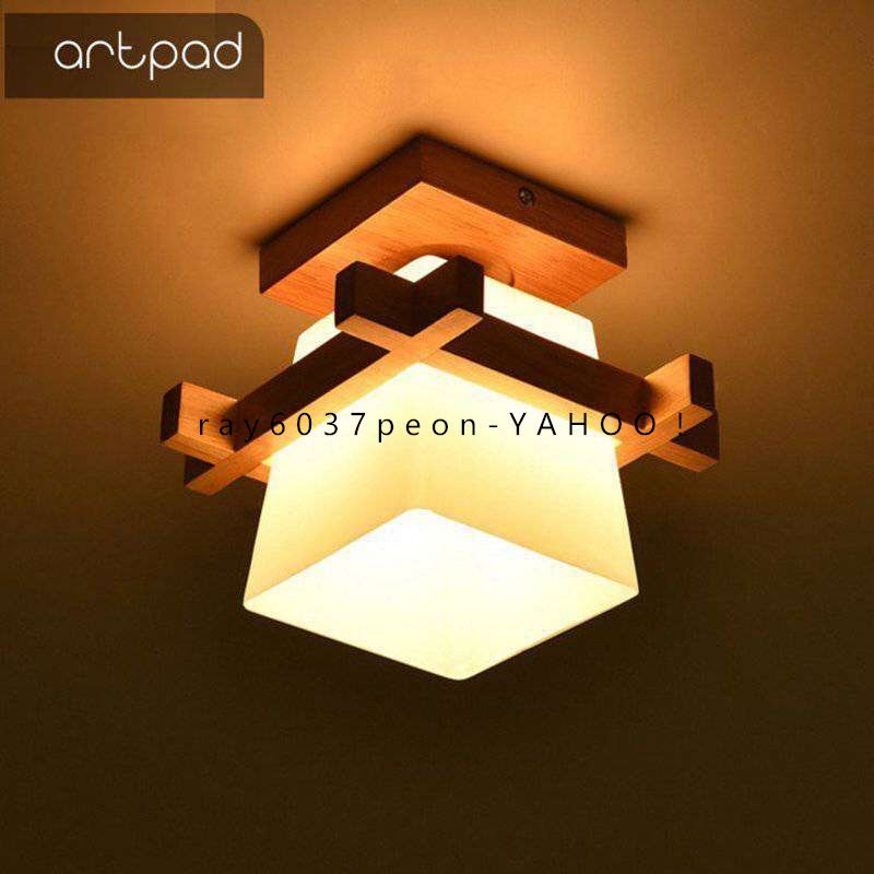 アートパッドシンプル日本畳E27木製ランプライト廊下ポーチバルコニーシーリングライト器具ガラス現代のシーリングランプ銘柄:アートパッド