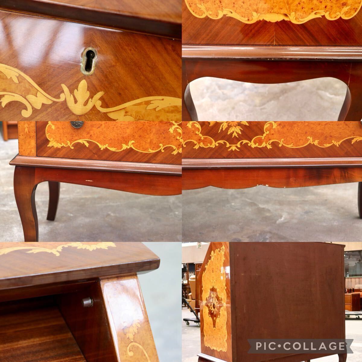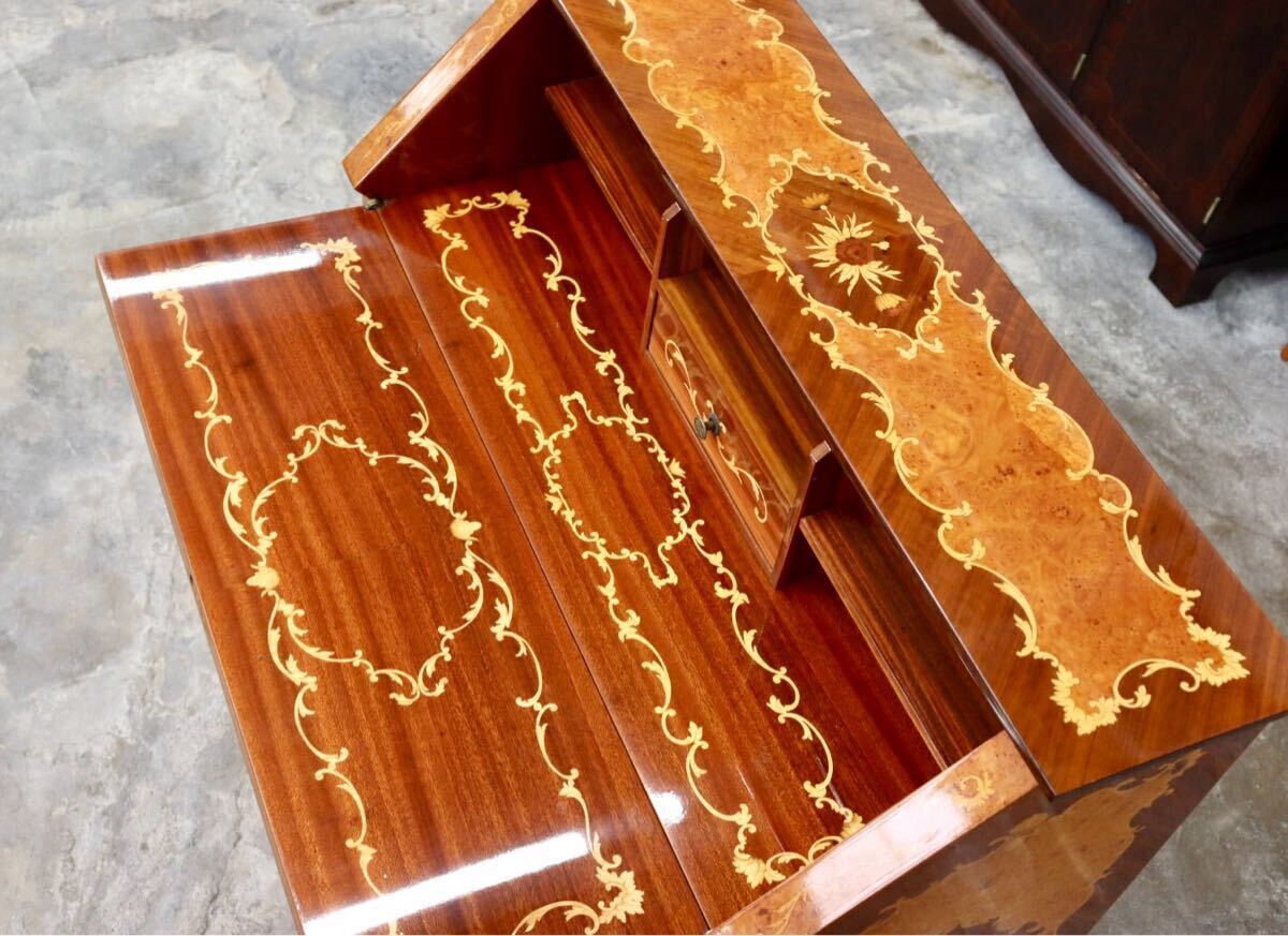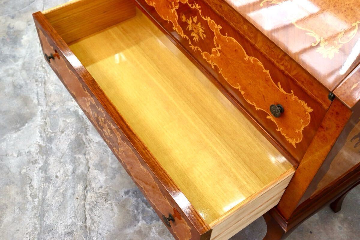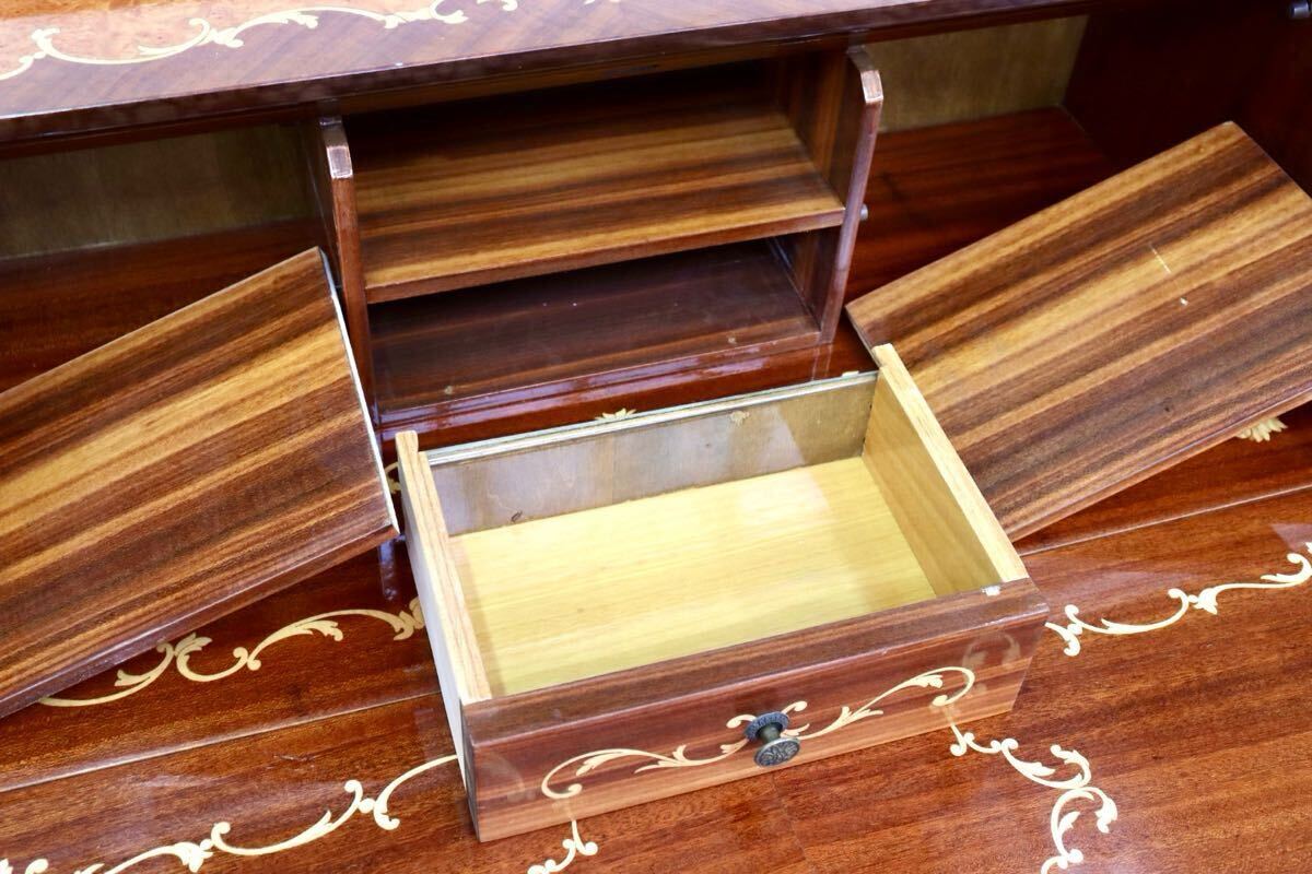 クラシカルな真鍮取っ手や象嵌細工、猫脚など優雅さを追求した美しさが印象的なライティングビューロー。一つ一つにヨーロッパの伝統的な様式が巧みに加えられています。