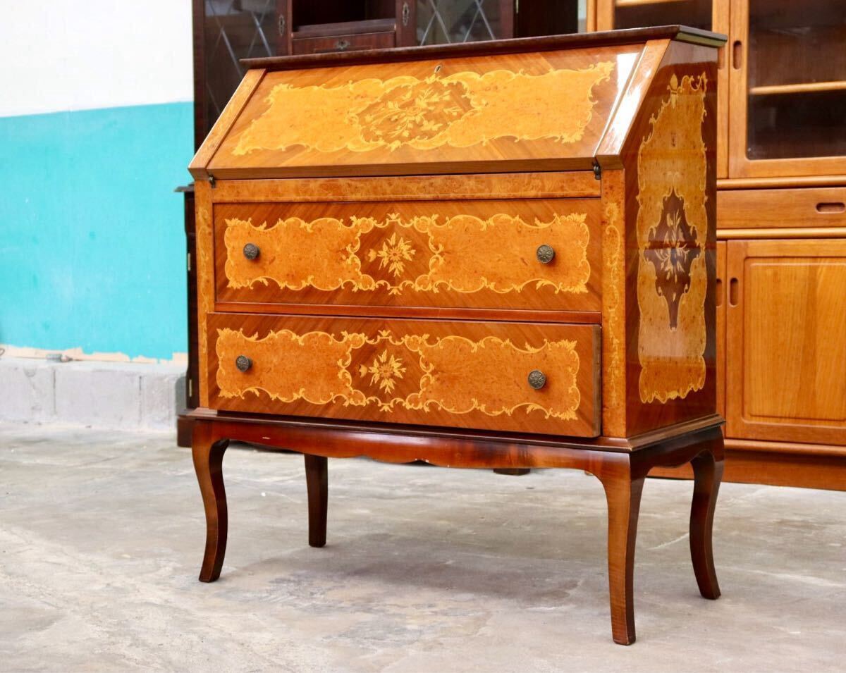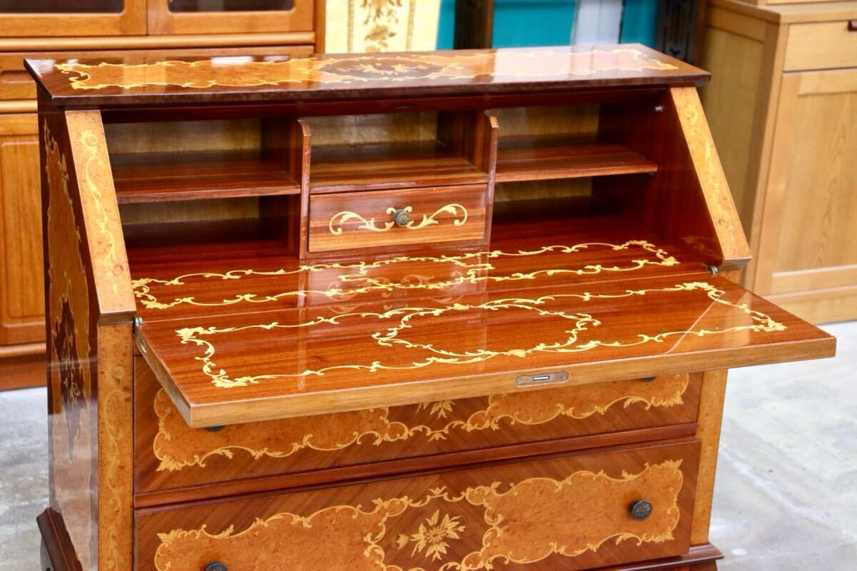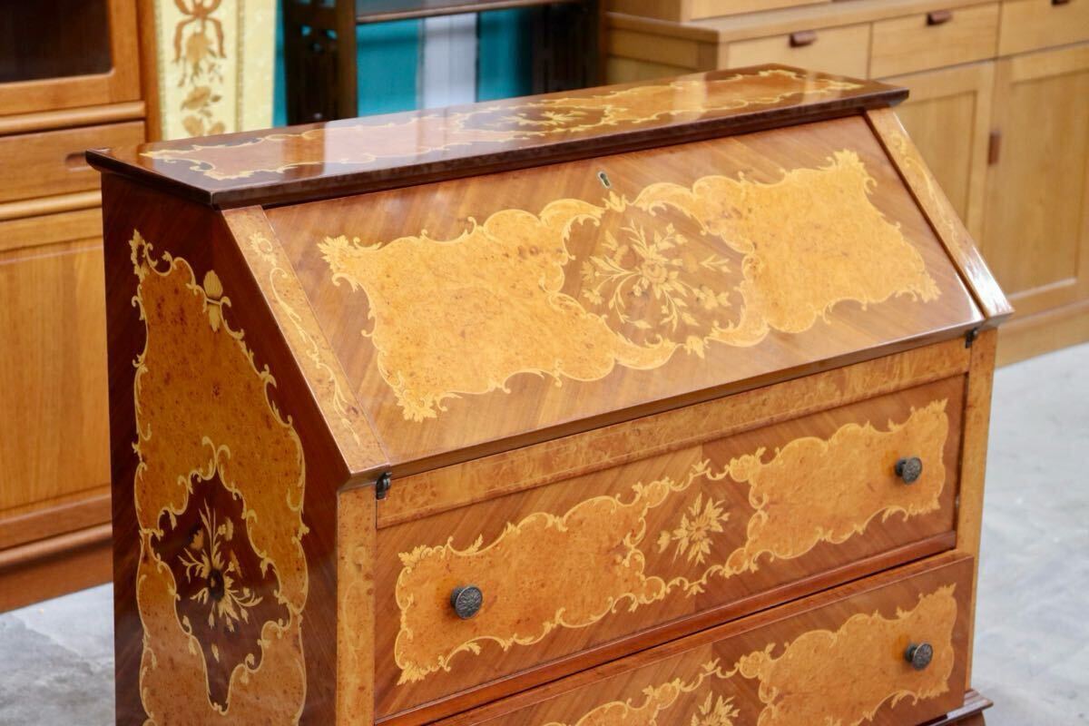 クラシカルな真鍮取っ手や象嵌細工、猫脚など優雅さを追求した美しさが印象的なライティングビューロー。一つ一つにヨーロッパの伝統的な様式が巧みに加えられています。
