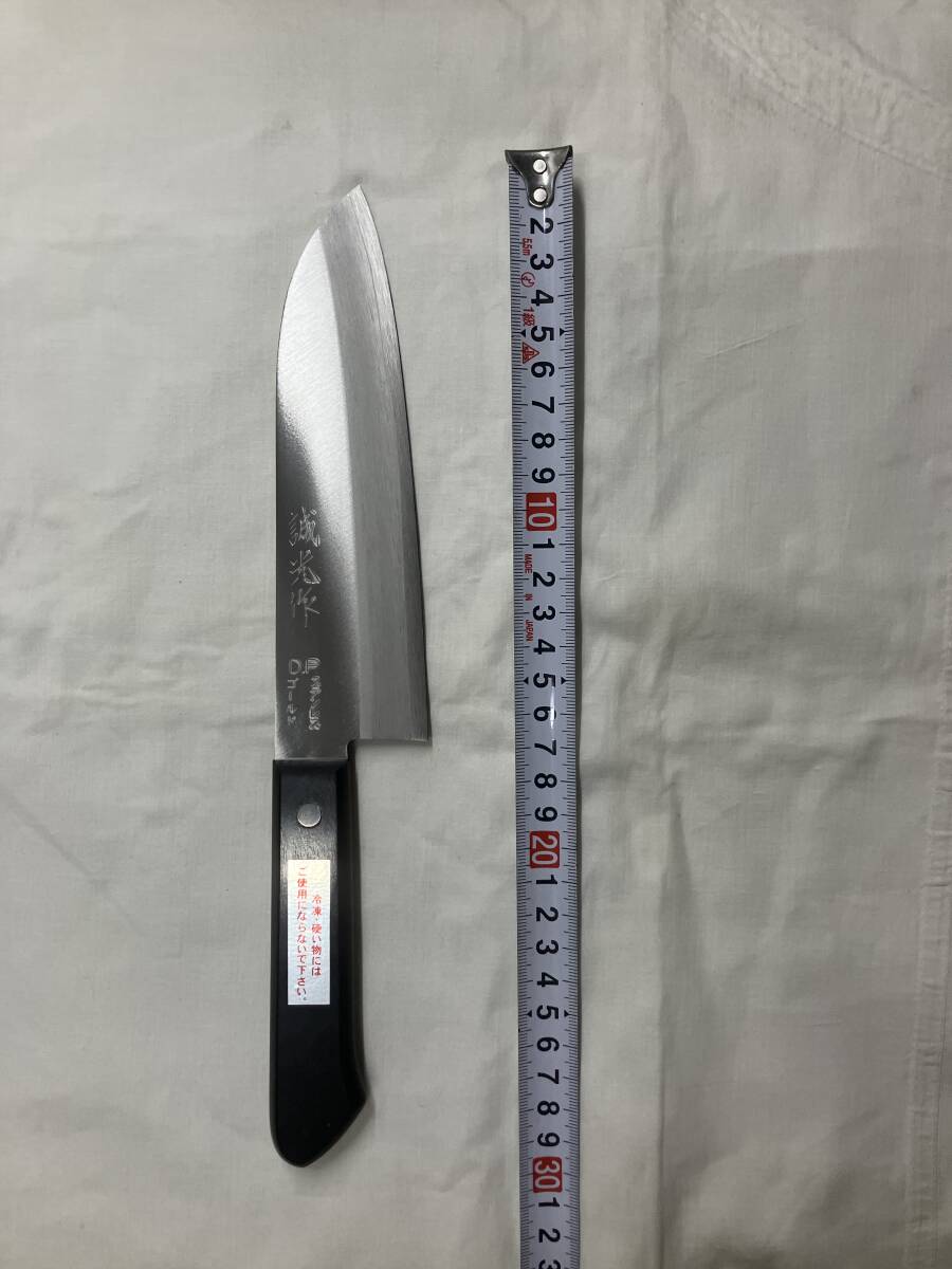 その名の通り、金物の町播州三木の三木刃物製作所のステンレス割込三徳庖丁