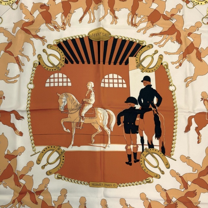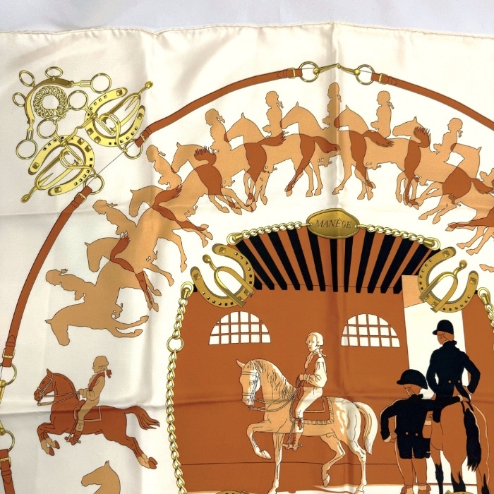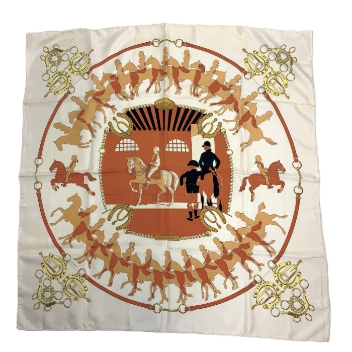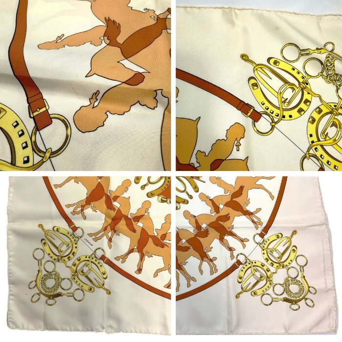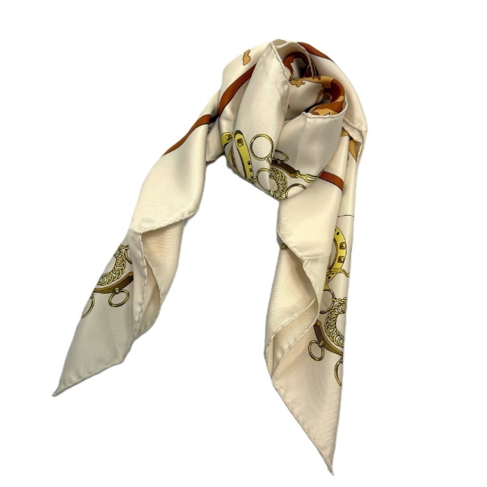 | 【コメント】 上品な柄で落ち着いた色味の素敵なスカーフです。品質タグあり。小さな汚れが所々、縁にうっすら汚れがありますが傷みはなくまだまだご使用いただけるお品物です。 |