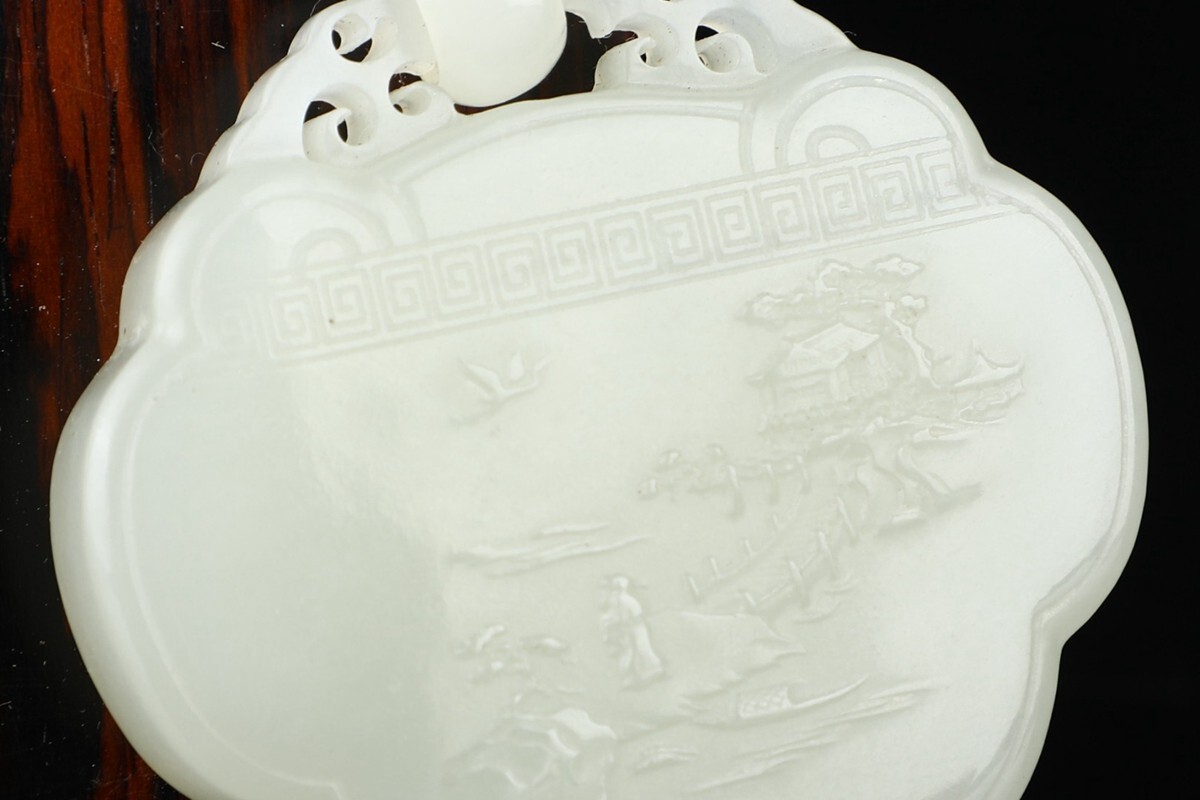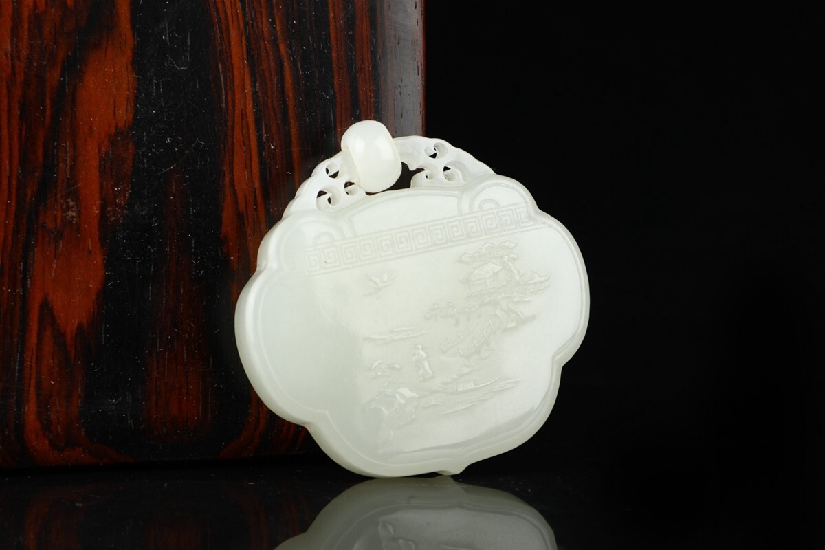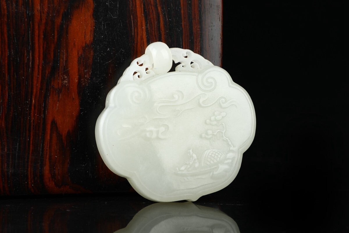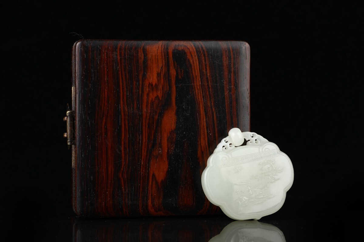 「清時代 和田玉 白玉彫り 人物故事 佩 箱付」極細工 裝身具 賞物 中国古美術 旧蔵出