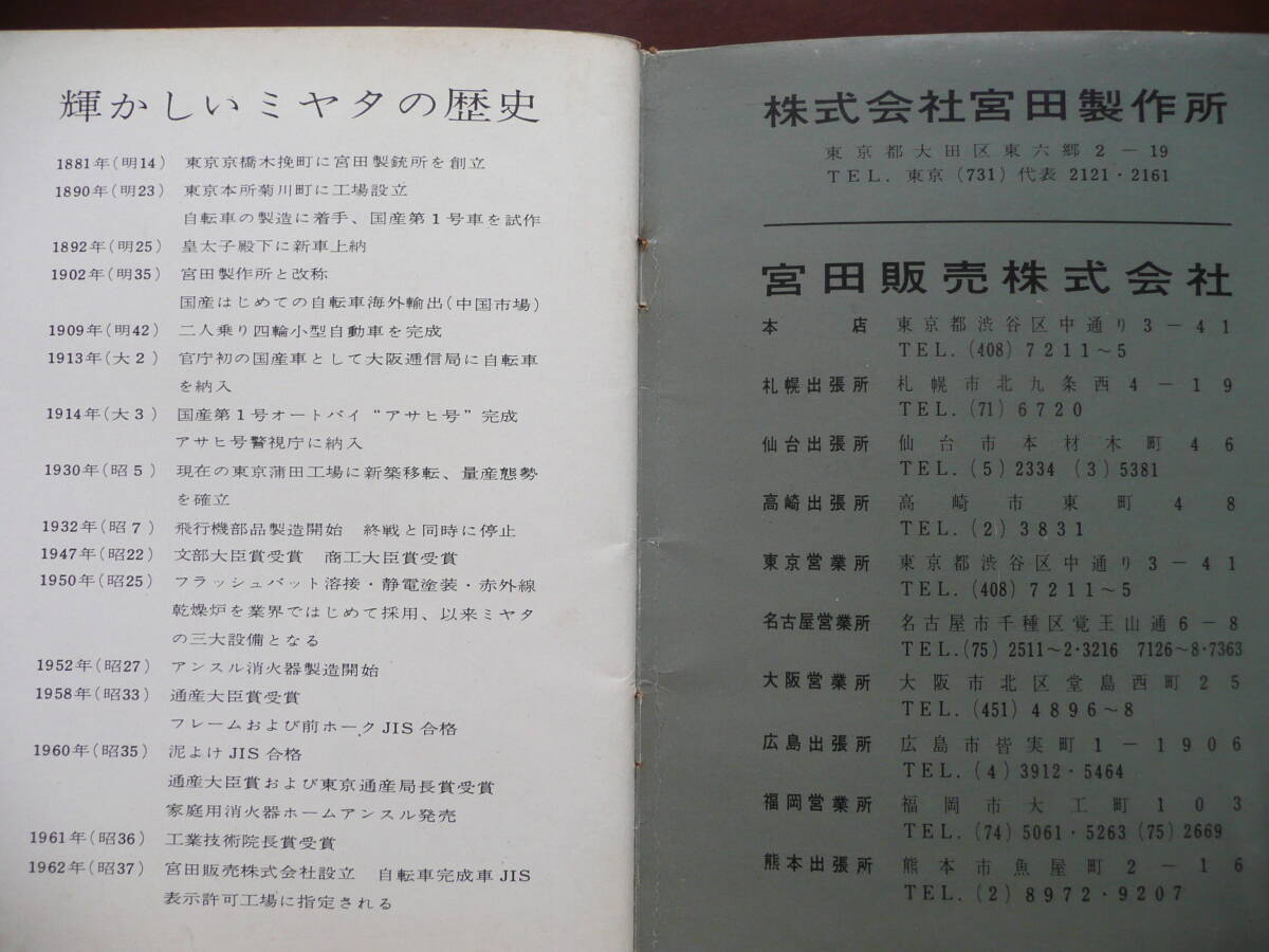 [ビンテージ/超希少] MIYATA 宮田自転車【BICYCLE CATALOGUE/17機種+おまけ3機種】自転車カタログ/パンフレット 1963年/S38年 昭和レトロ