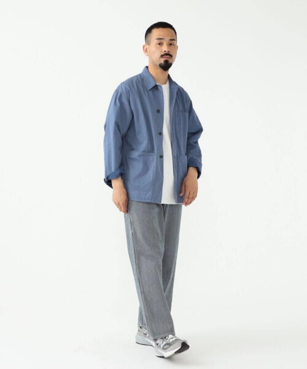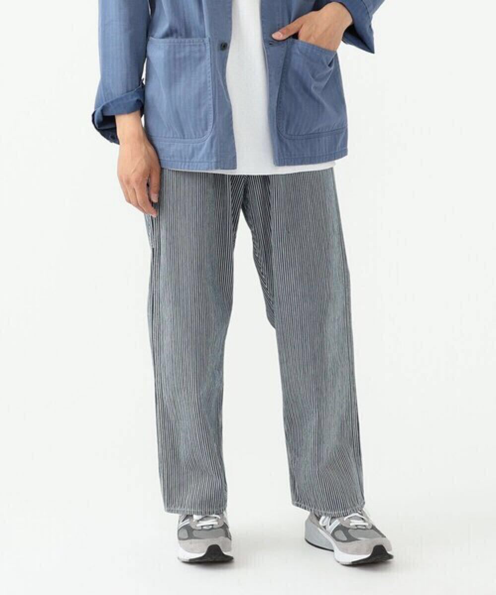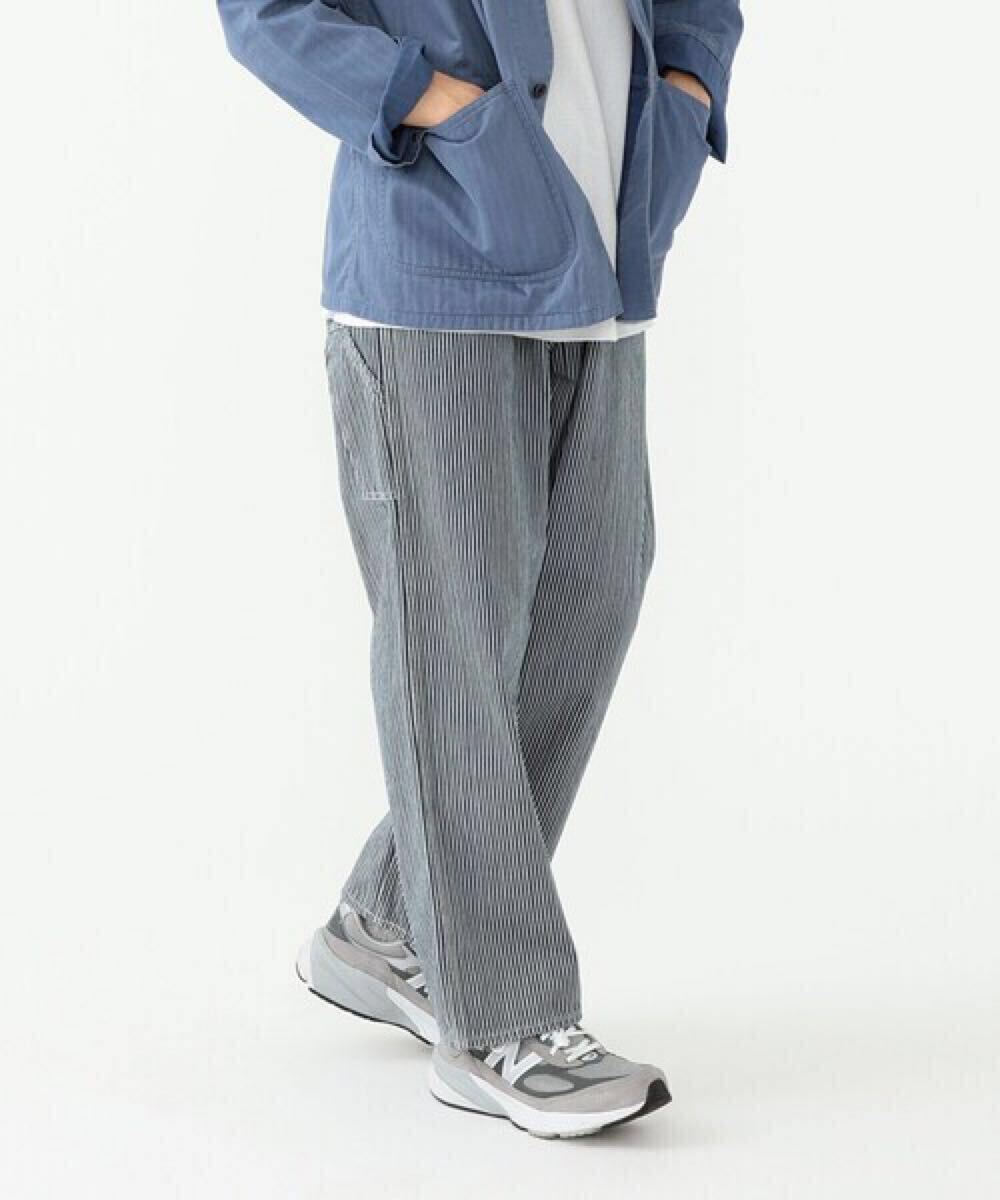 くっきりとした柄目のオーセンティックなヒッコリーストライプを使用した<BEAMS PLUS> ペインターパンツ。