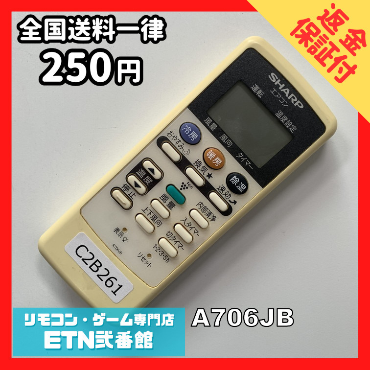 C2B261 【送料250円】エアコン リモコン / SHARP シャープ A706JB 冷房 暖房 動作確認済み★即発送★