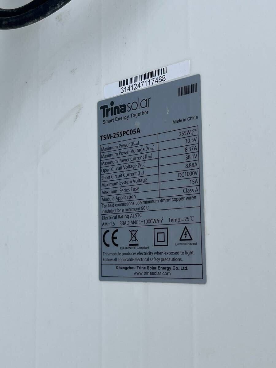 【現地渡し限定】DIYにおすすめ!Trinaソーラー 255W 1200枚大特価まとめ売り/バラ売り歓迎 中古品 埼玉県行田市