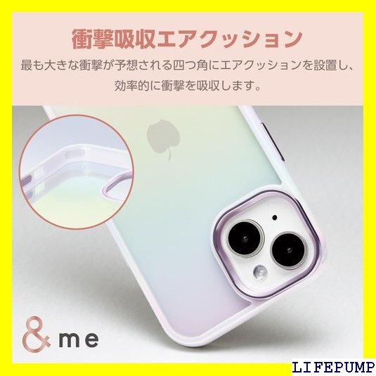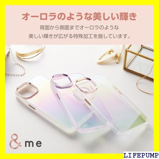 エレコム iPhone15 ケース &me オーロラ 可愛い おしゃれ ハイブリッド素材 四つ角エアークッション ストラップホルダー付属 ストラップホール付き ラベンダー PM-A23AHVCAPU 1191
