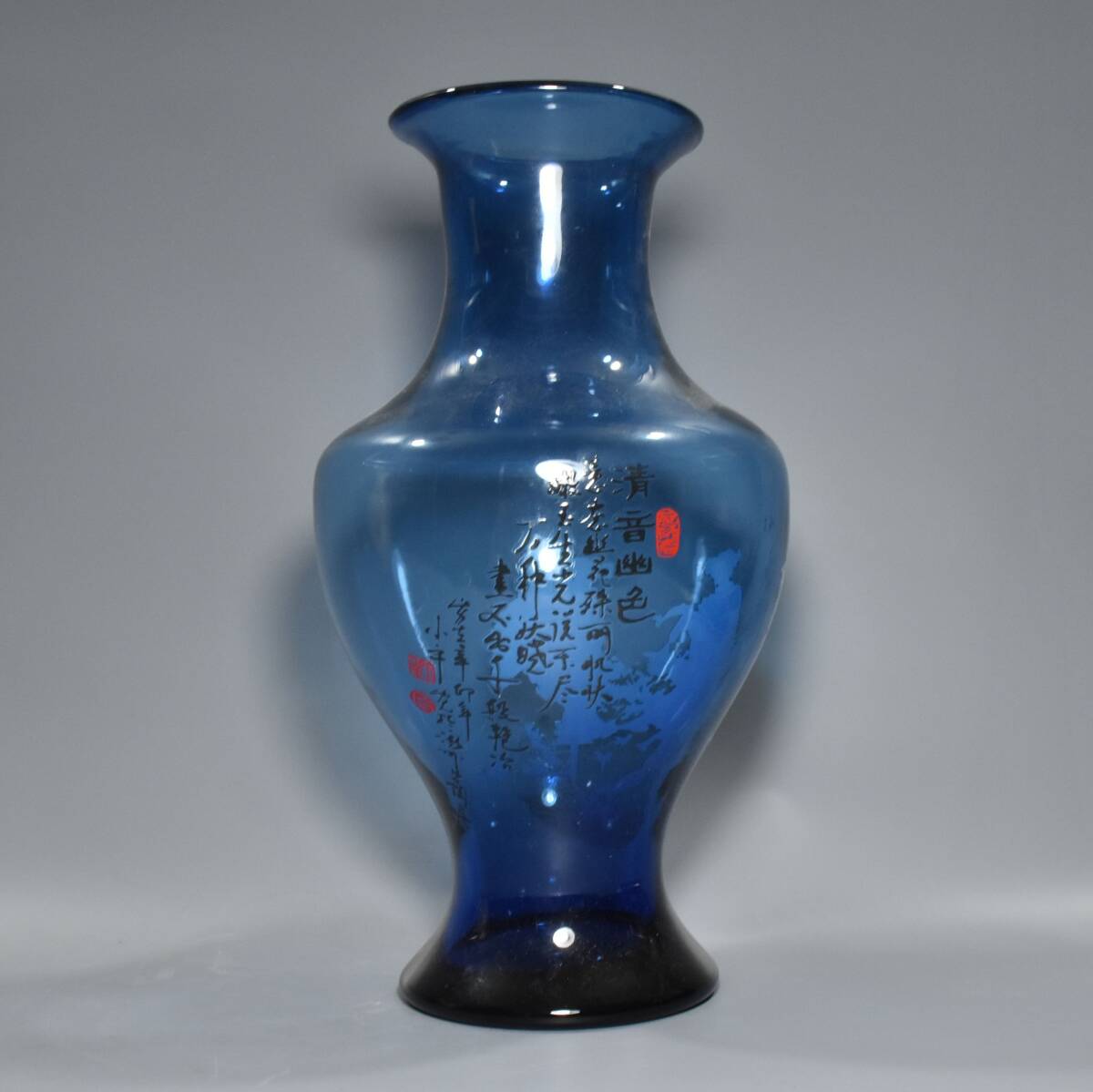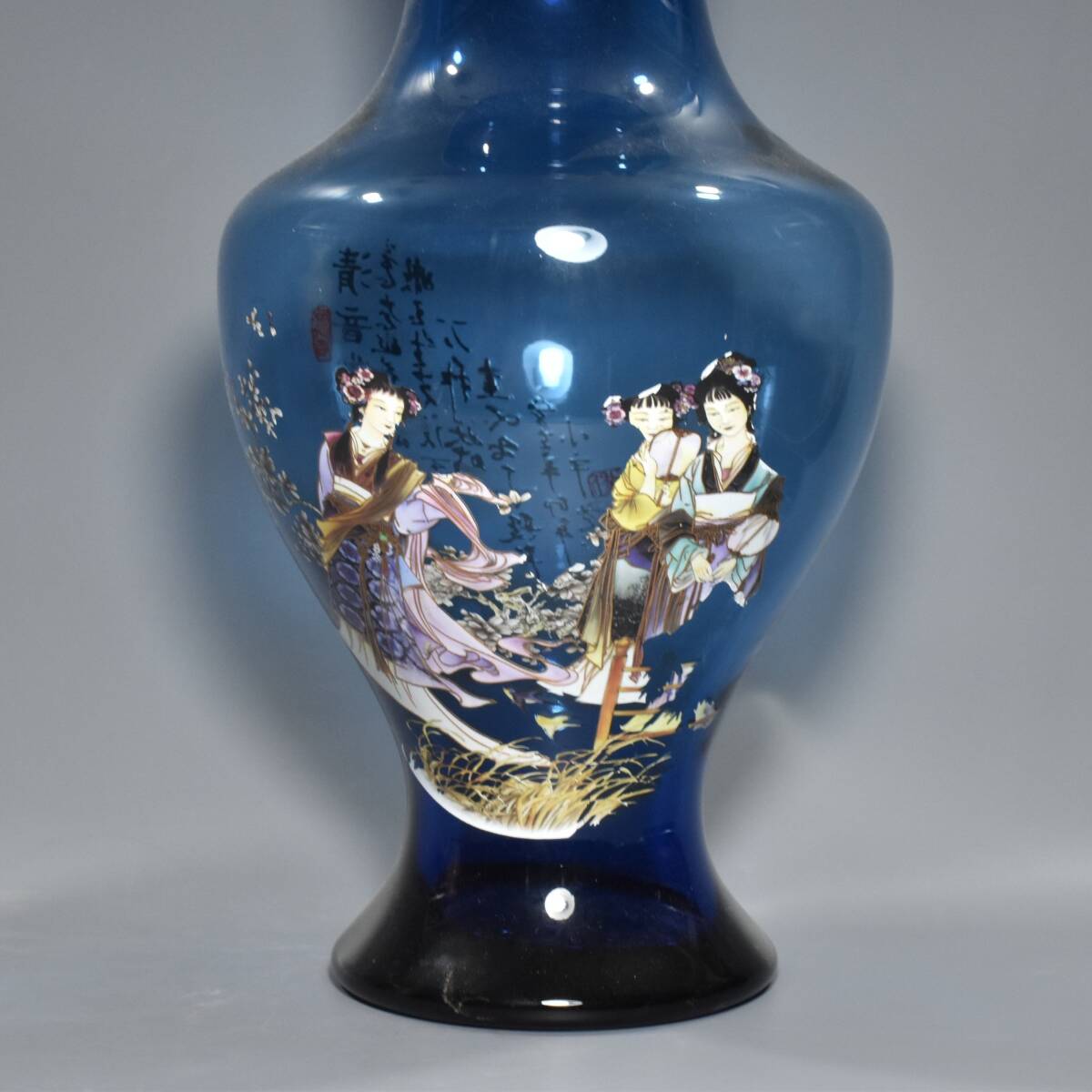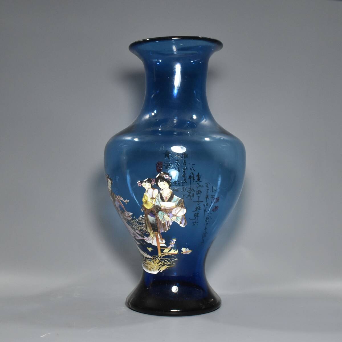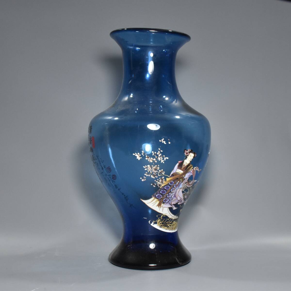 清時代 宮廷御藏 古宝石彫 藍宝石 人物紋 花瓶 賞瓶 置物 時代物 古董品 骨董 旧家蔵出 唐物 中国古玩 古美術