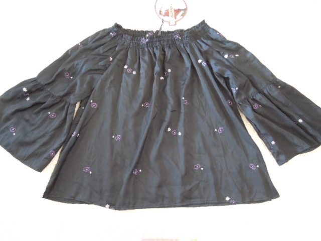 HK WORKS LONDON 花刺繍オフショブラウス!Mサイズ・濃紺・新品