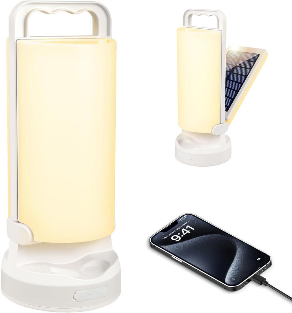 白色光、昼光色、暖色の3つの明るさモードを備えています。ランタン下部のタッチセンサースイッチを長押しすることで、明るさを調整できます。ソーラーランタンのスイッチにはメモリ機能が搭載されているため、前回調整した明るさが次回電源投入時に自動的に反映されます。使い慣れた明るさに再度調整する必要はなく、非常に便利です。