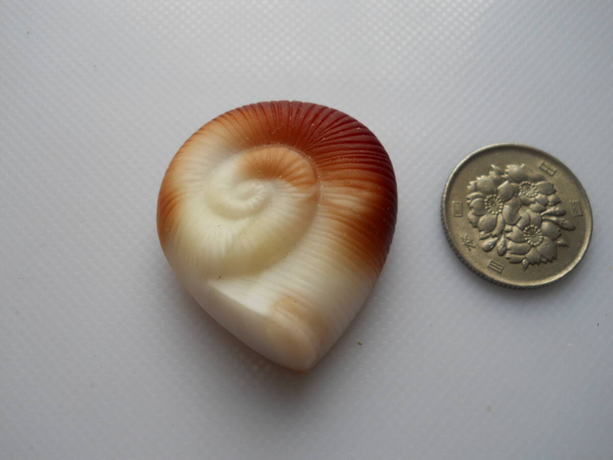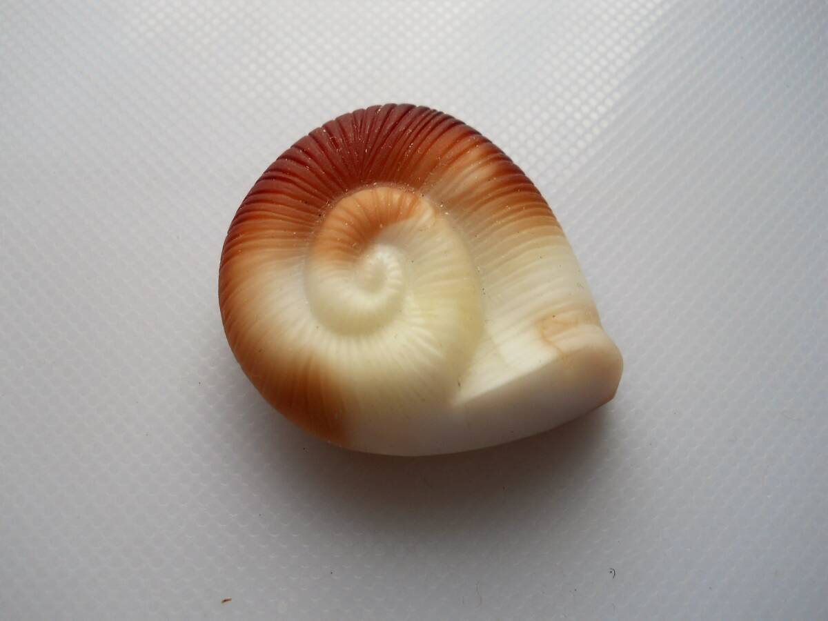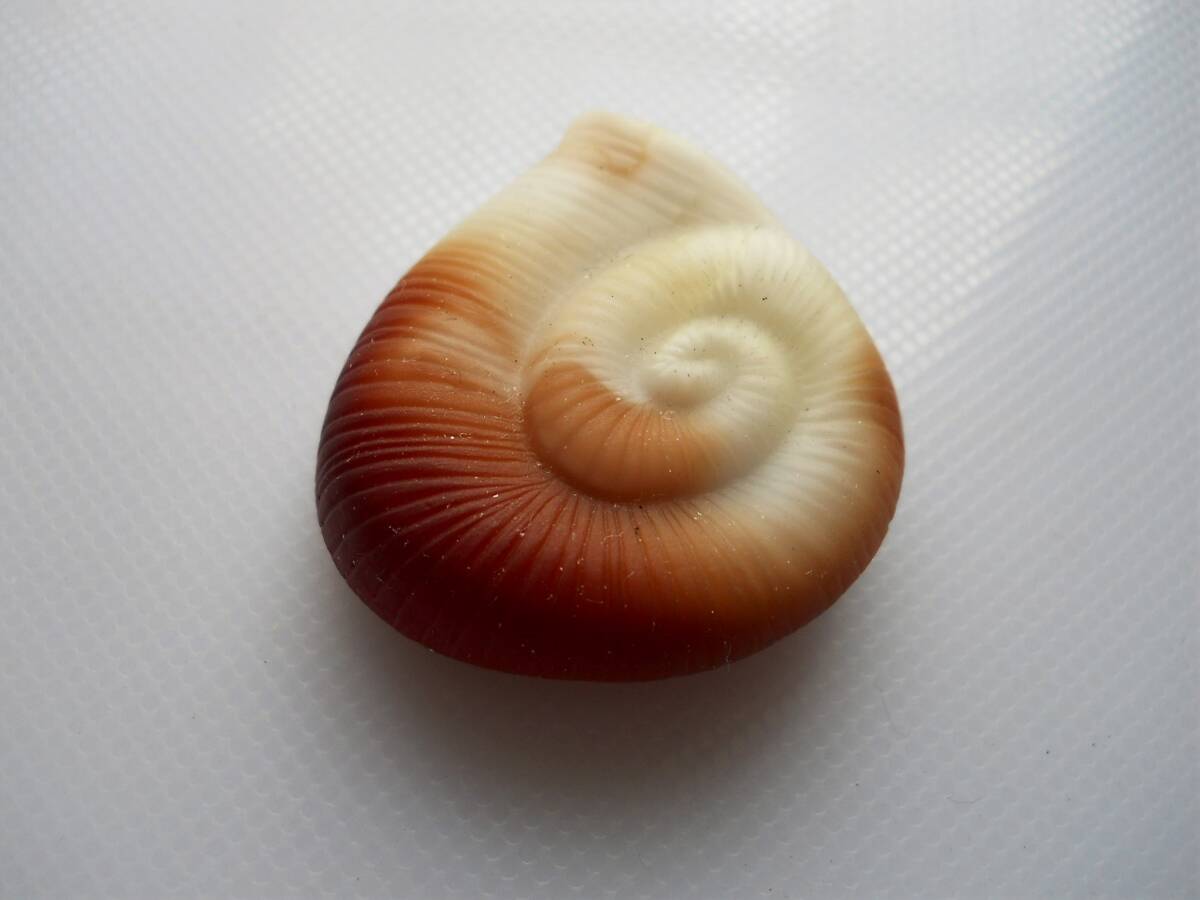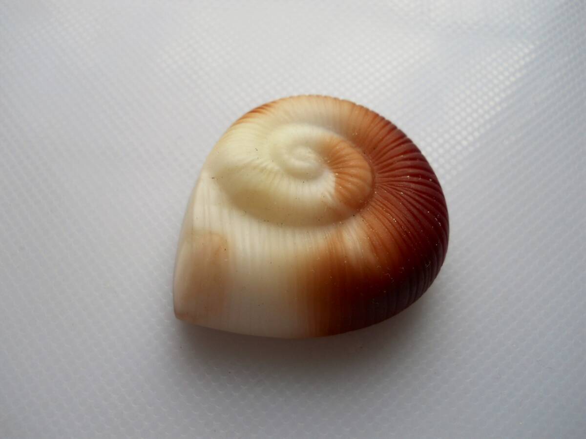チェコ製ヴィンテージ チョコレート色のマーブルガラス 立体感ある巻き貝 シェルのブローチ デッドストック