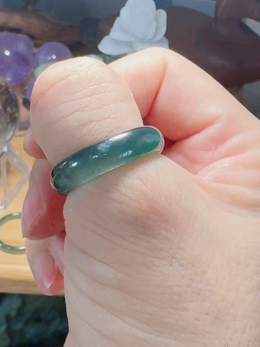 R2-01552天然本翡翠《本物保証》 藍水翡翠 指輪約19号 一点物 希少 縁起物 お守り 魔除け 昇進 成功 風水 金運 財運 幸運 幸福