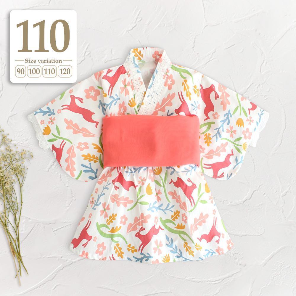 新品未使用 110cm うさぎ柄〔#BM浴衣ワンピース〕浴衣ドレス 兵児帯 2点セット 子供 ベビー キッズ 女の子 七夕 お祭り 花火大会 ピンク
