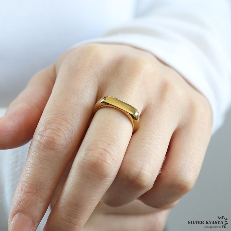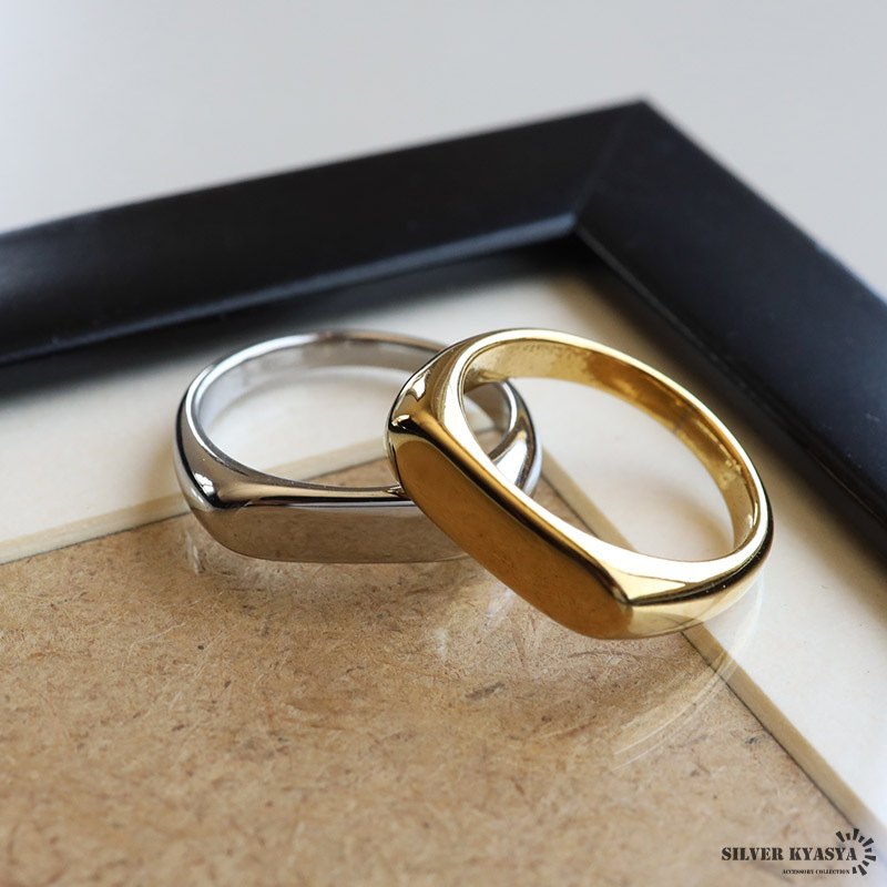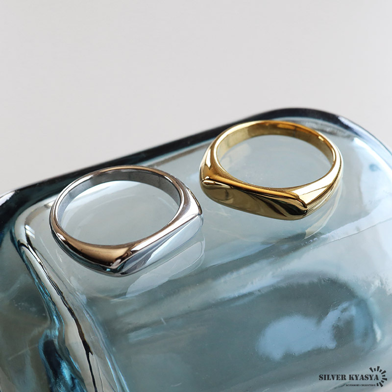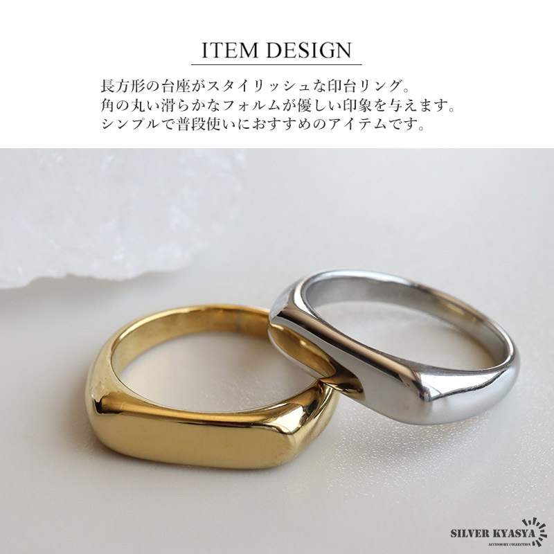 長方形の台座がスタイリッシュな印台リング。角の丸い滑らかなフォルムが優しい印象を与えます。シンプルで普段使いにおすすめのアイテムです。