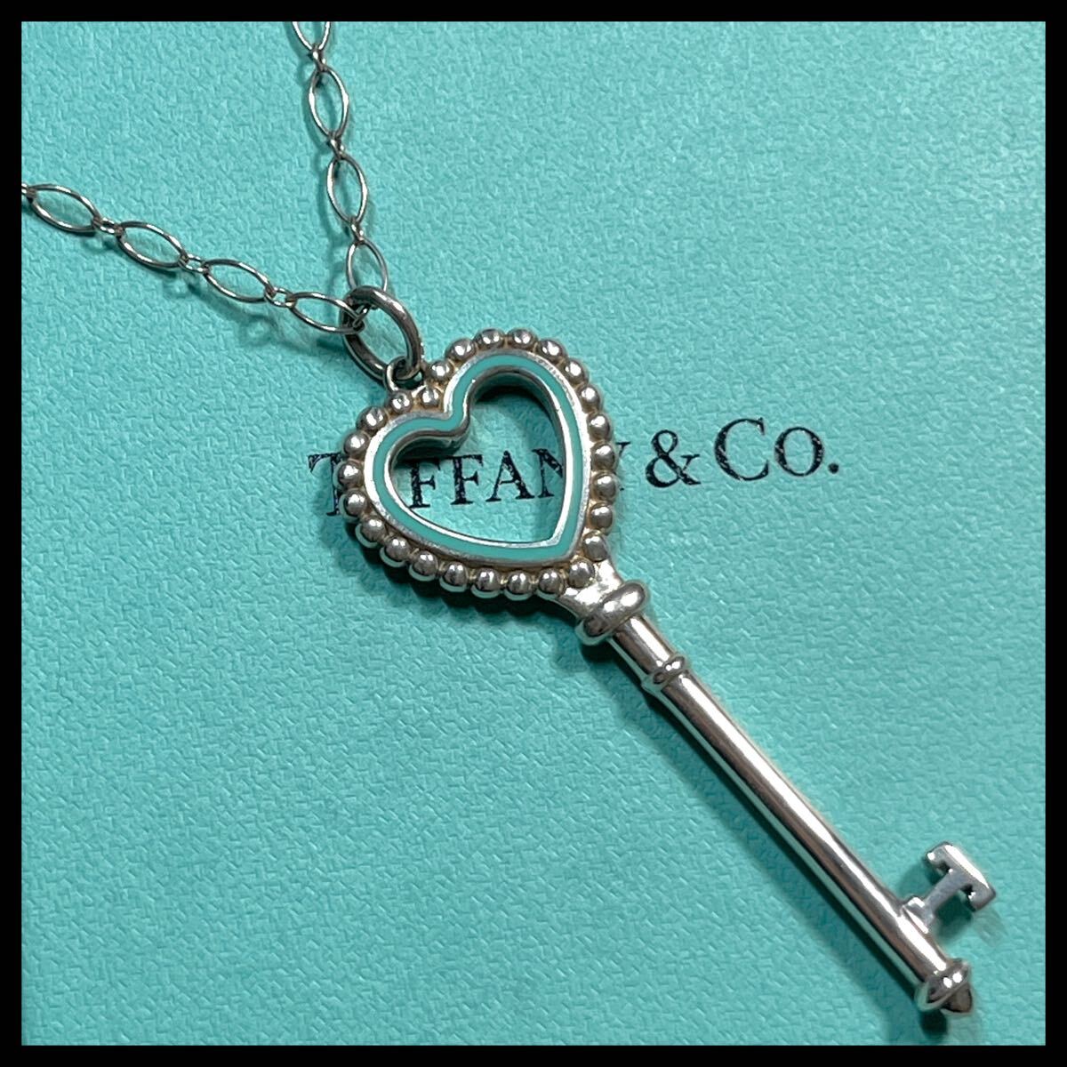 ハートの縁には立体的なドット装飾が施され、ティファニーブルーのエナメルが上品に彩りを添えています。