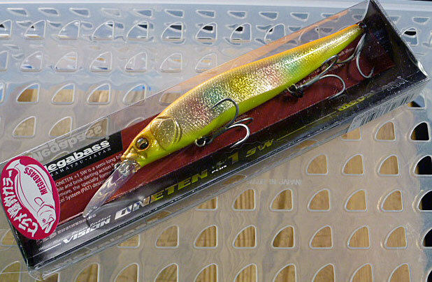メガバス VISION ONETEN+1 SW。110.5mm、1/2oz。塩分濃度により、シンキング(淡水域)~汽水域(スローシンキング)~外洋(スローフローティング)となるモデルです。