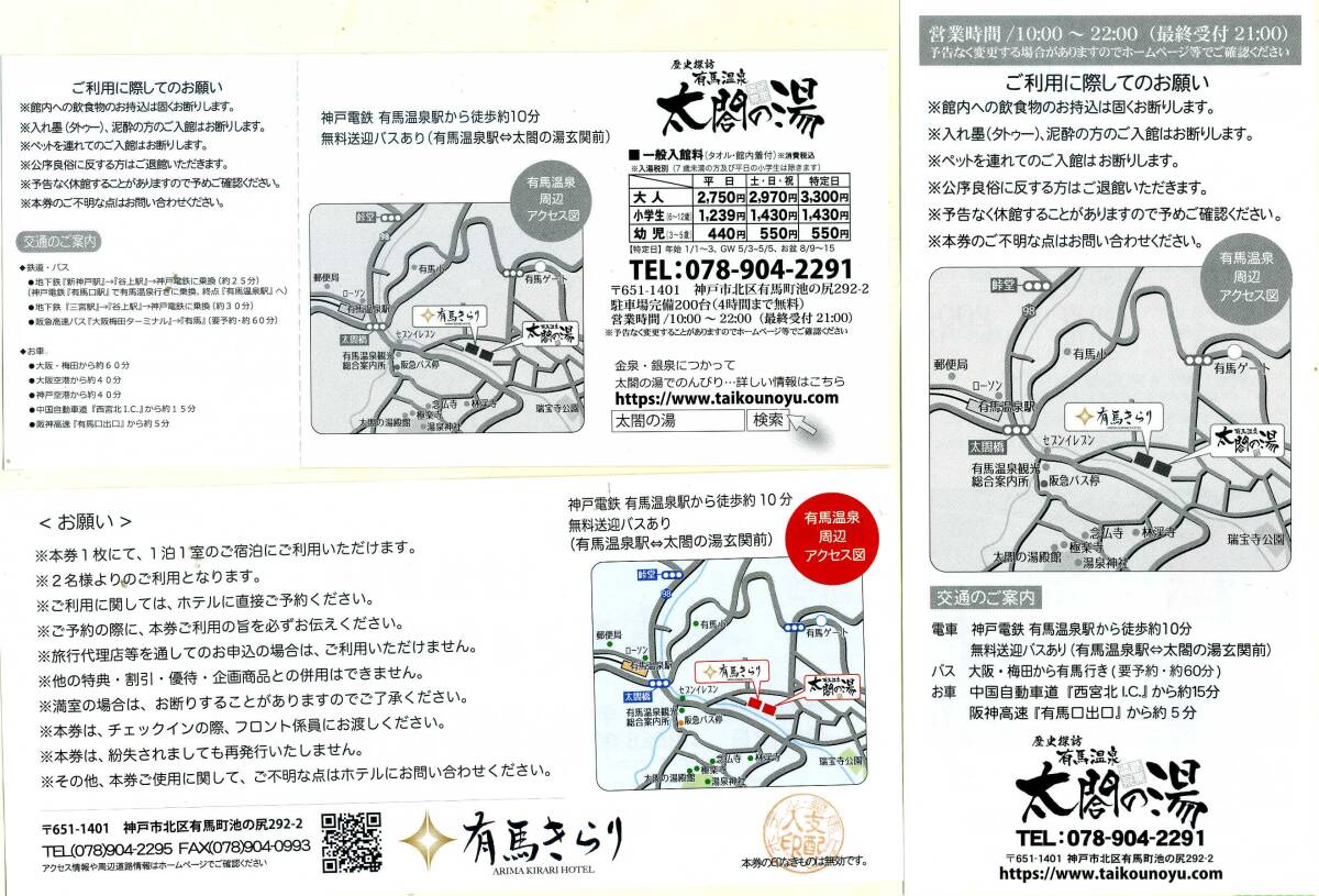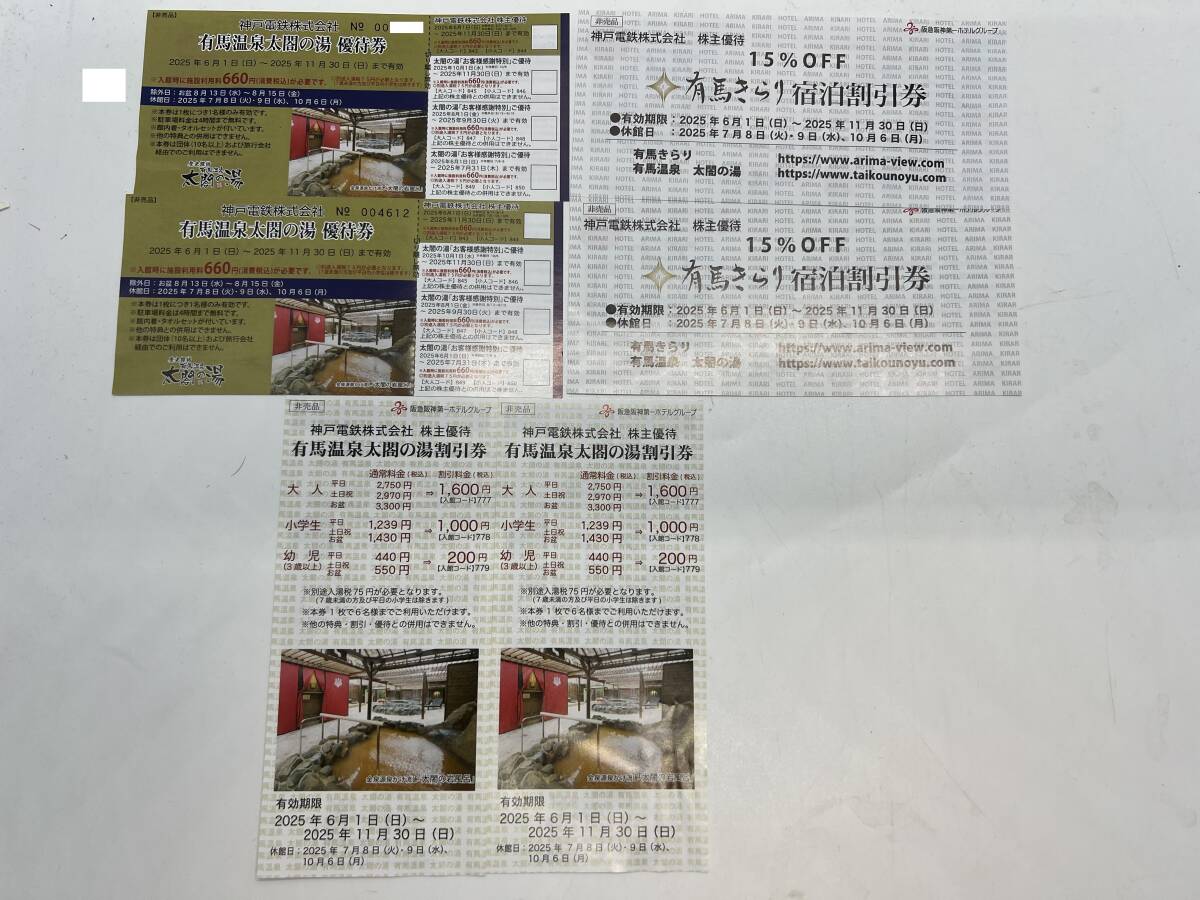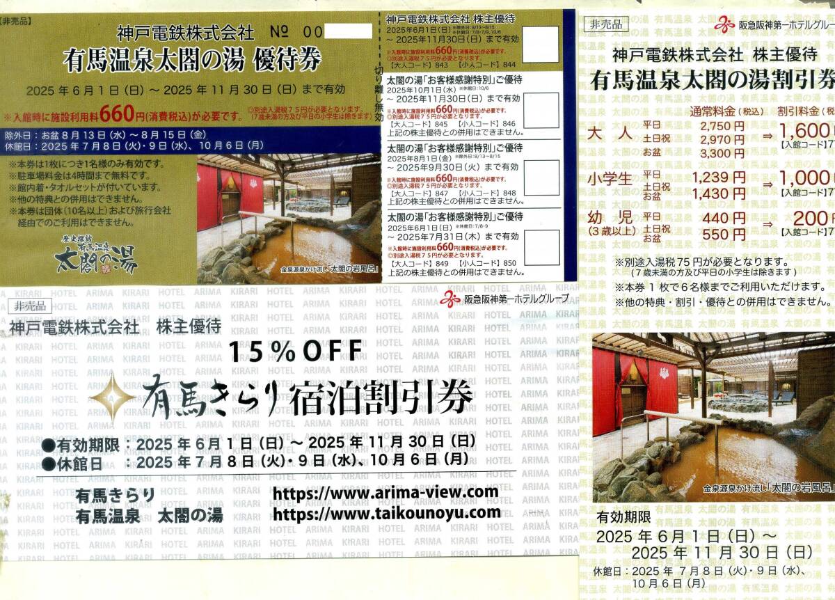 神戸電鉄 株主優待券 「有馬温泉太閤の湯 優待券2枚」+「有馬温泉太閤の湯 割引券2枚」+「有馬きらり宿泊割引券2枚」