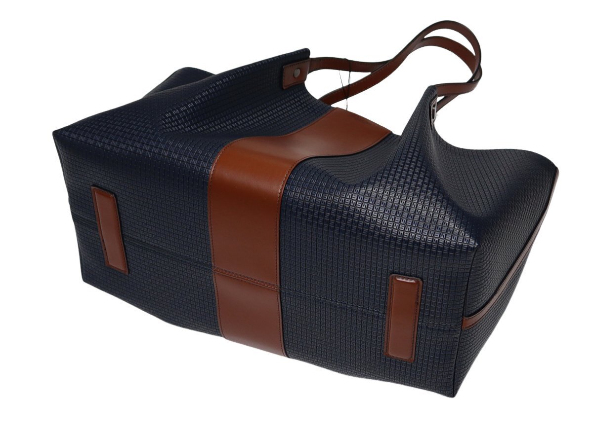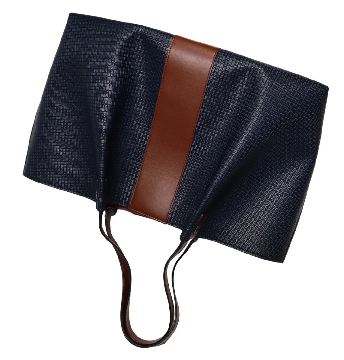 ネイビー × ブラウン ブランドの頭文字「S」をイメージしたエンボスが刻まれている、人気「ステパン」のネイビーとブラウンのコンビカラー。見た目はレザーですが、実はPVCコーティングを施したコットン素材。撥水性に優れており、雨や雪などの悪天候な場面で臆することなく使えます。センターやサイド、間口、底面のパイピング、ハンドルなどには「セラピアン」ならではの極上カーフレザーを使用。凸凹感のある表情が美しいドレープを生み、立体的シェイプの美麗デザインや極上のレザー使い、お色の良さやブランドロゴもあり、ラグジュアリー感が醸し出されています。内側は高級車やスポーツカーの内装に採用されている「アルカンターラ・スエード」を使用したブラック色です。公式カラーは「オーシャンブルー / クオイオ」。 (※こちらの実物は、1~6枚目の画像のものになります。7~8枚目などは同モデルの色違いやデザイン違いになります)
