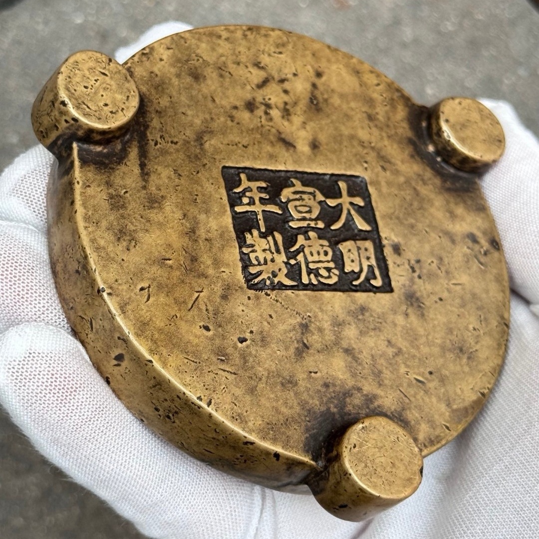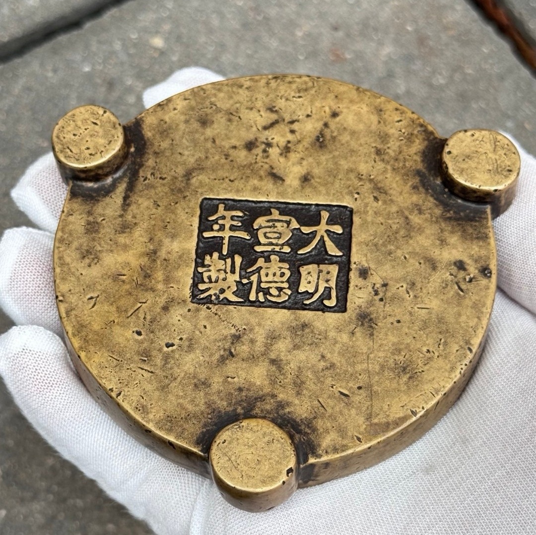 唐物 大明 宣德年製 銅硯臺 六字楷書款 硯臺 銅製品 銅器 極細工 古美術品 時代物 中国古玩 骨董品 D67