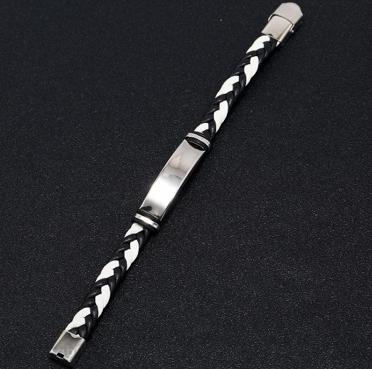 ブレスレット 新品 編み込み メンズ レザーバングル チタンステンレス 紳士 アクセサリー 総長21センチ 長さ調整可能 白/黒