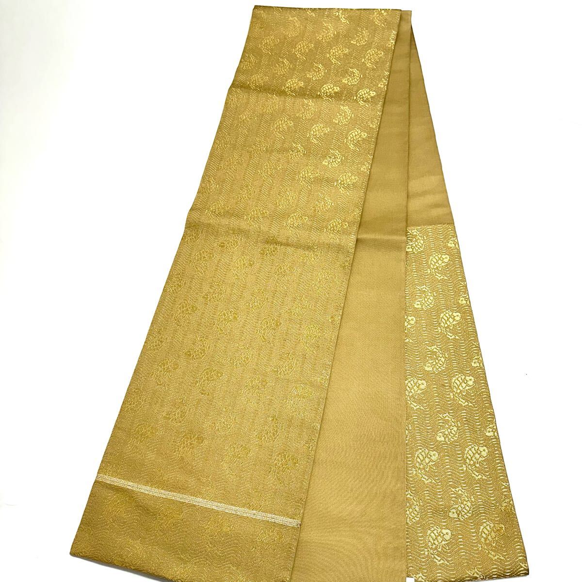 【七福】c384 逸品 高級品 正絹 袋帯 六通 龍村平蔵裂 名物荒磯錦 金糸 豪華