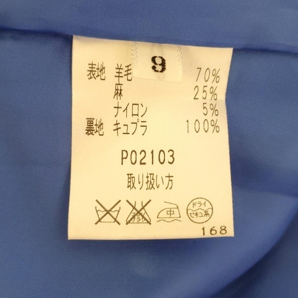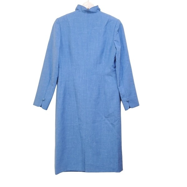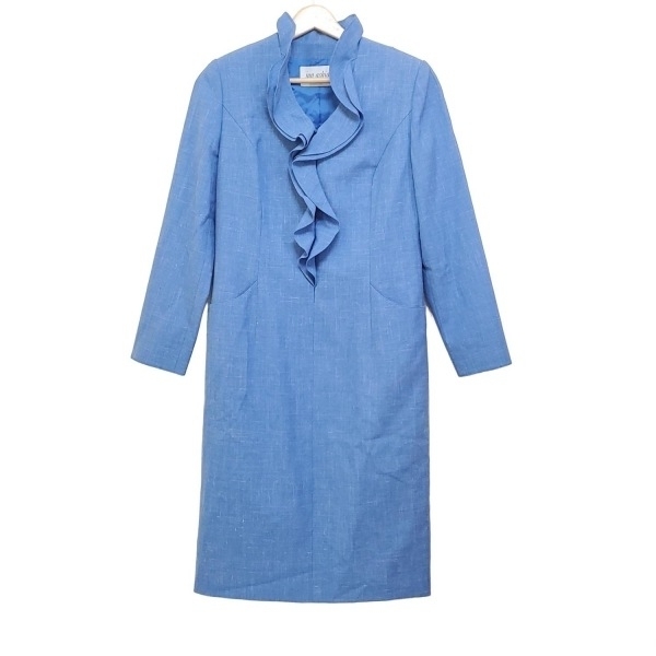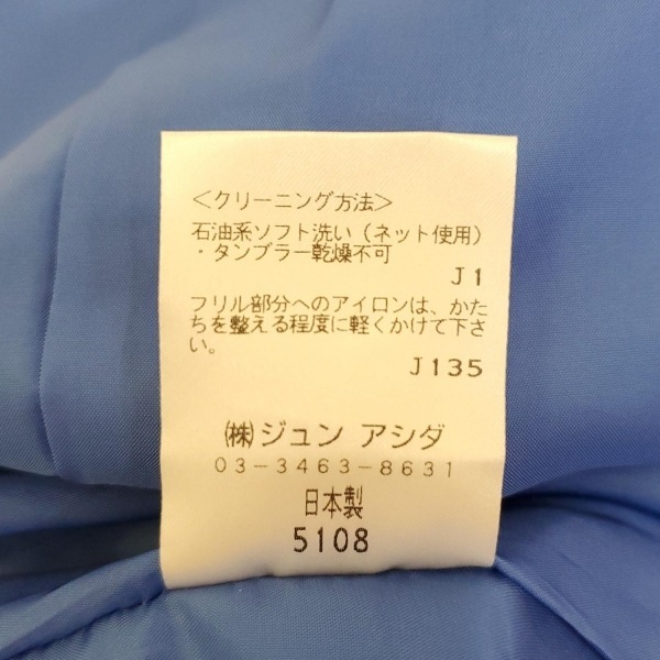ジュンアシダ JUN ASHIDA サイズ9 M - ライトブルー レディース Vネック/長袖/ロング/麻混/フリル 美品 ワンピース