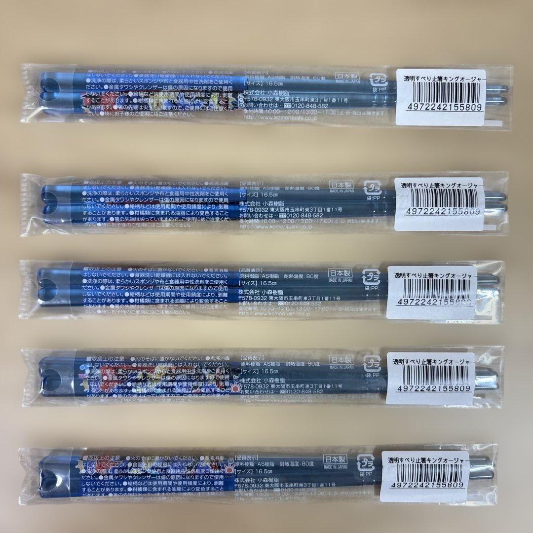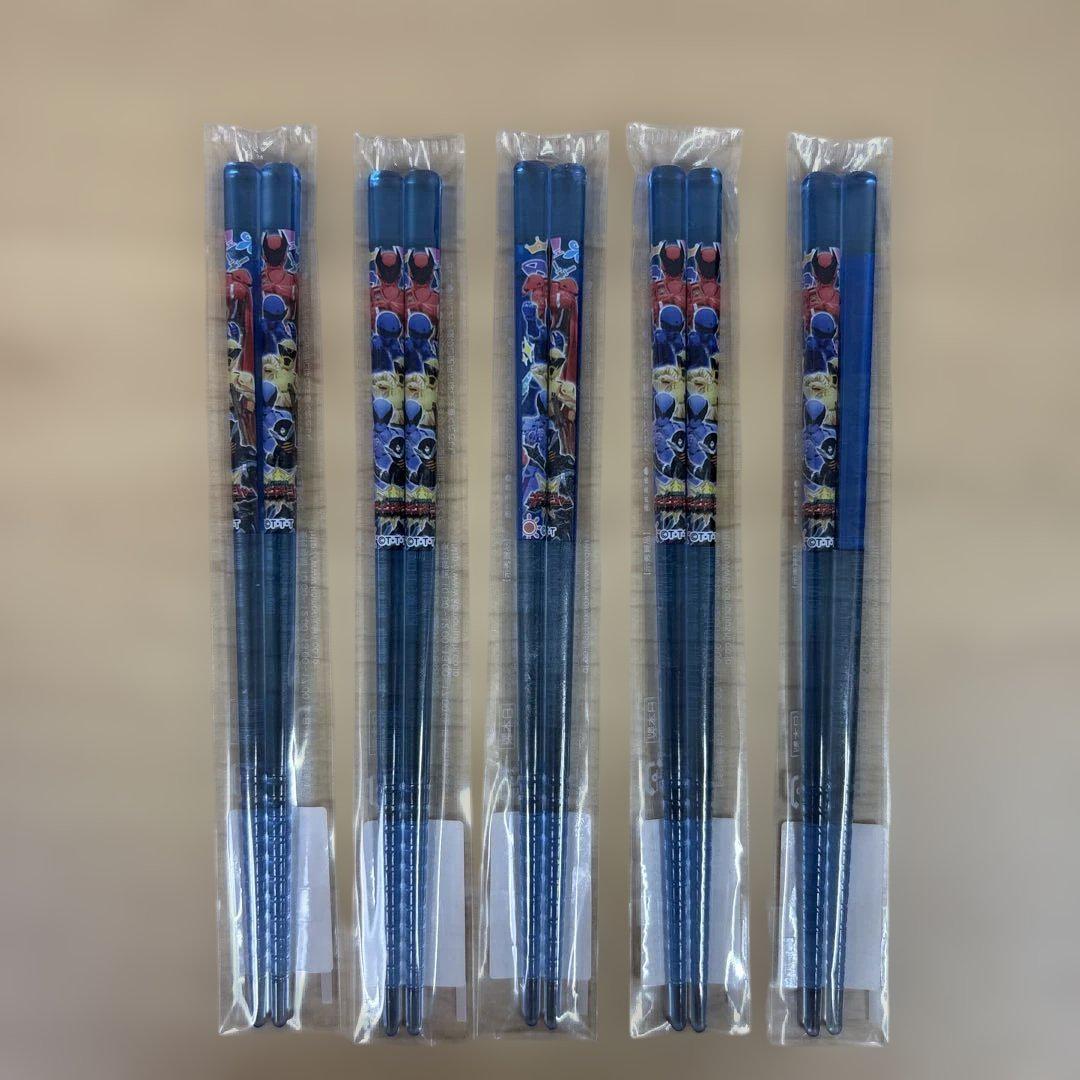 キングオージャー柄のプラスチック製箸5本セット、約23cmのサイズで子供に最適。
